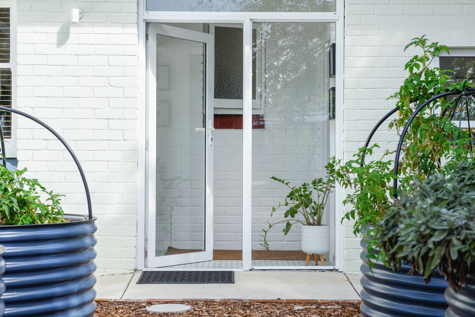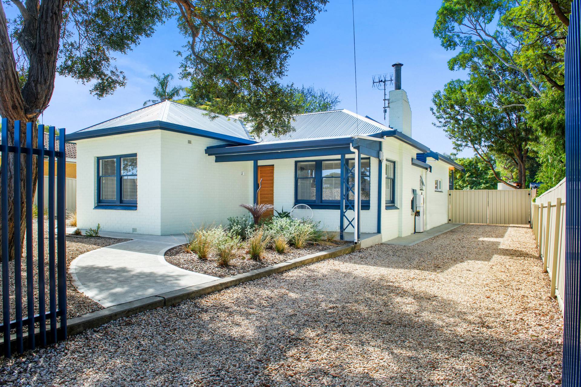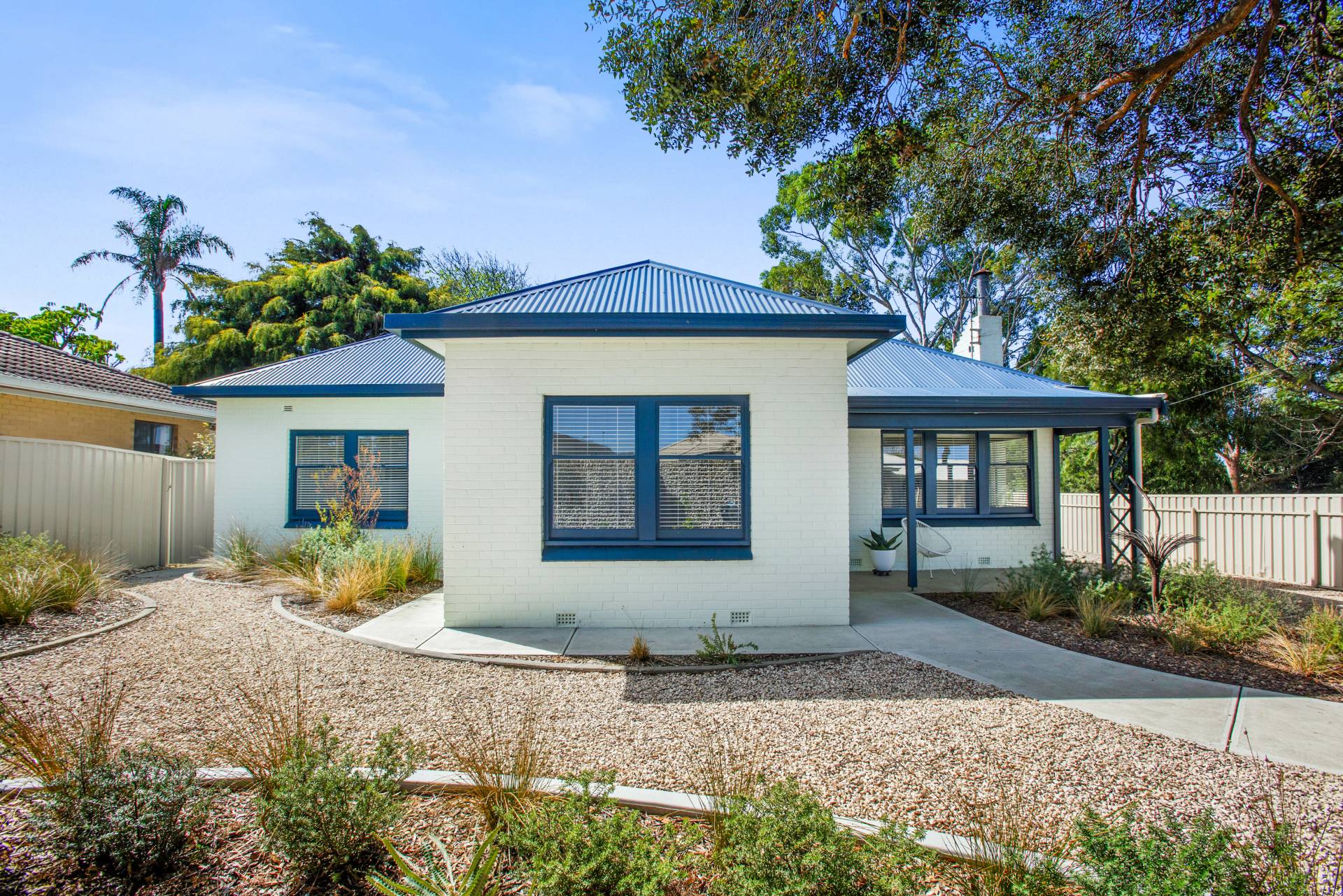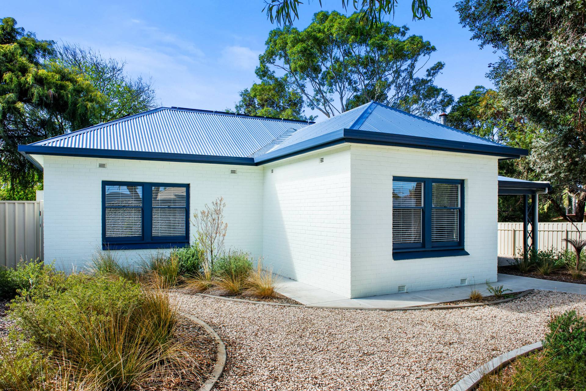 • Beautifully landscaped front and rear gardens, featuring a striking gabion wall, custom gates, citrus, stone fruit and fruit trees and three raised wicking beds perfect for homegrown produce