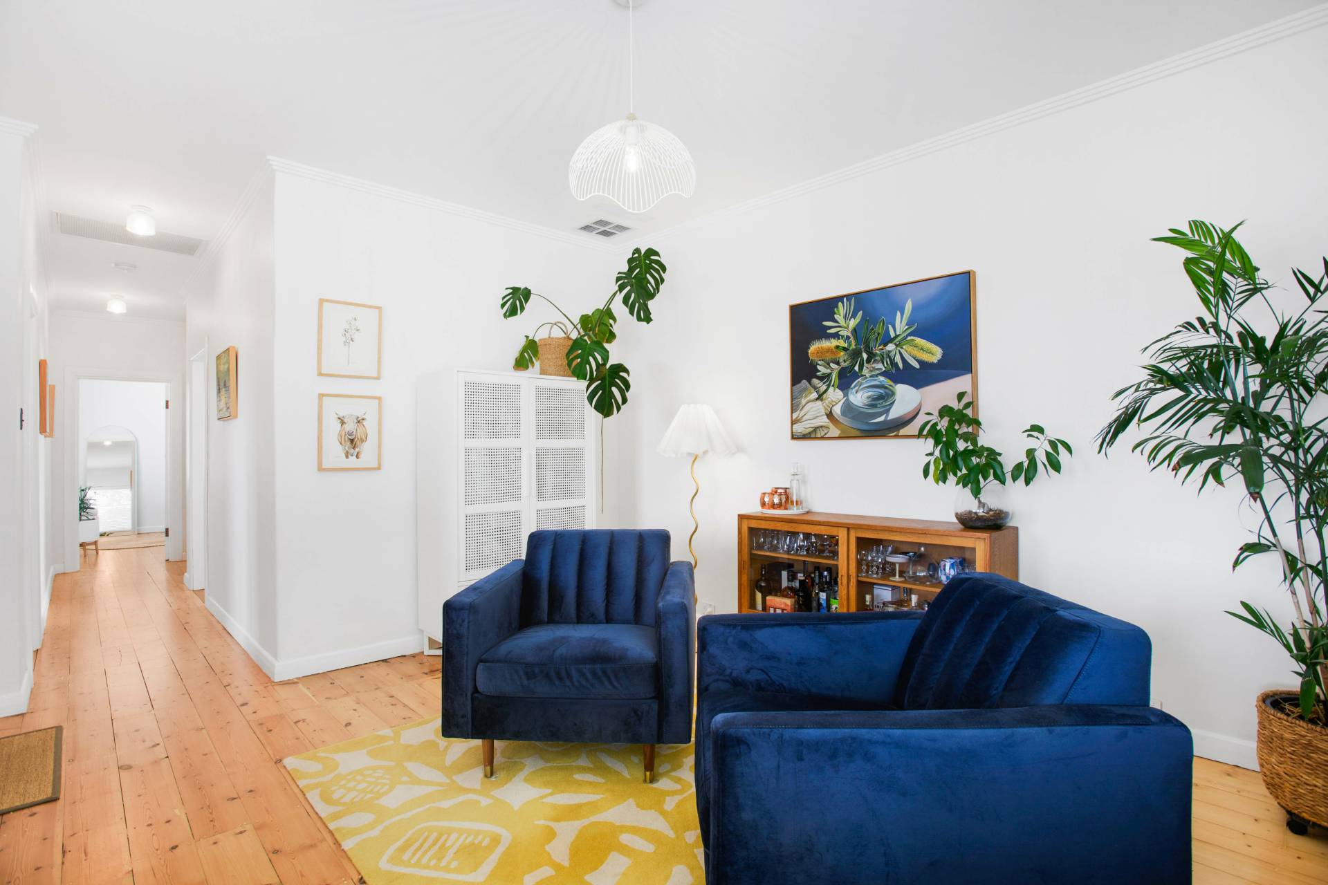 • Warm white mahogany flooring to the rear of the home, offering natural elegance underfoot