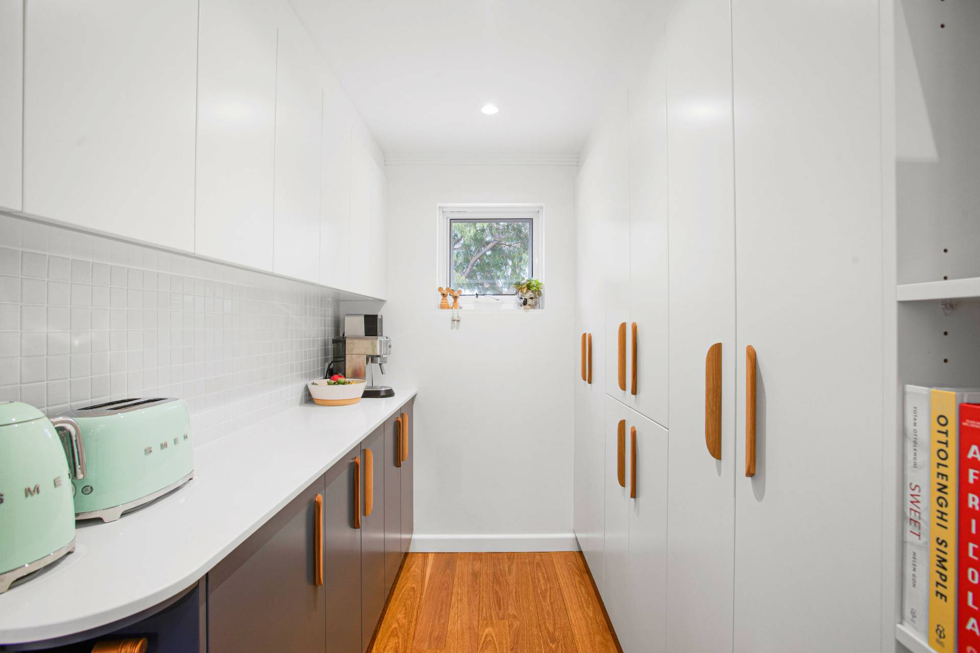 • Designer kitchen featuring a walk-in pantry, Smeg induction cooktop and range hood and stone bench tops and dedicated coffee bar area, thoughtfully crafted for everyday living and entertaining