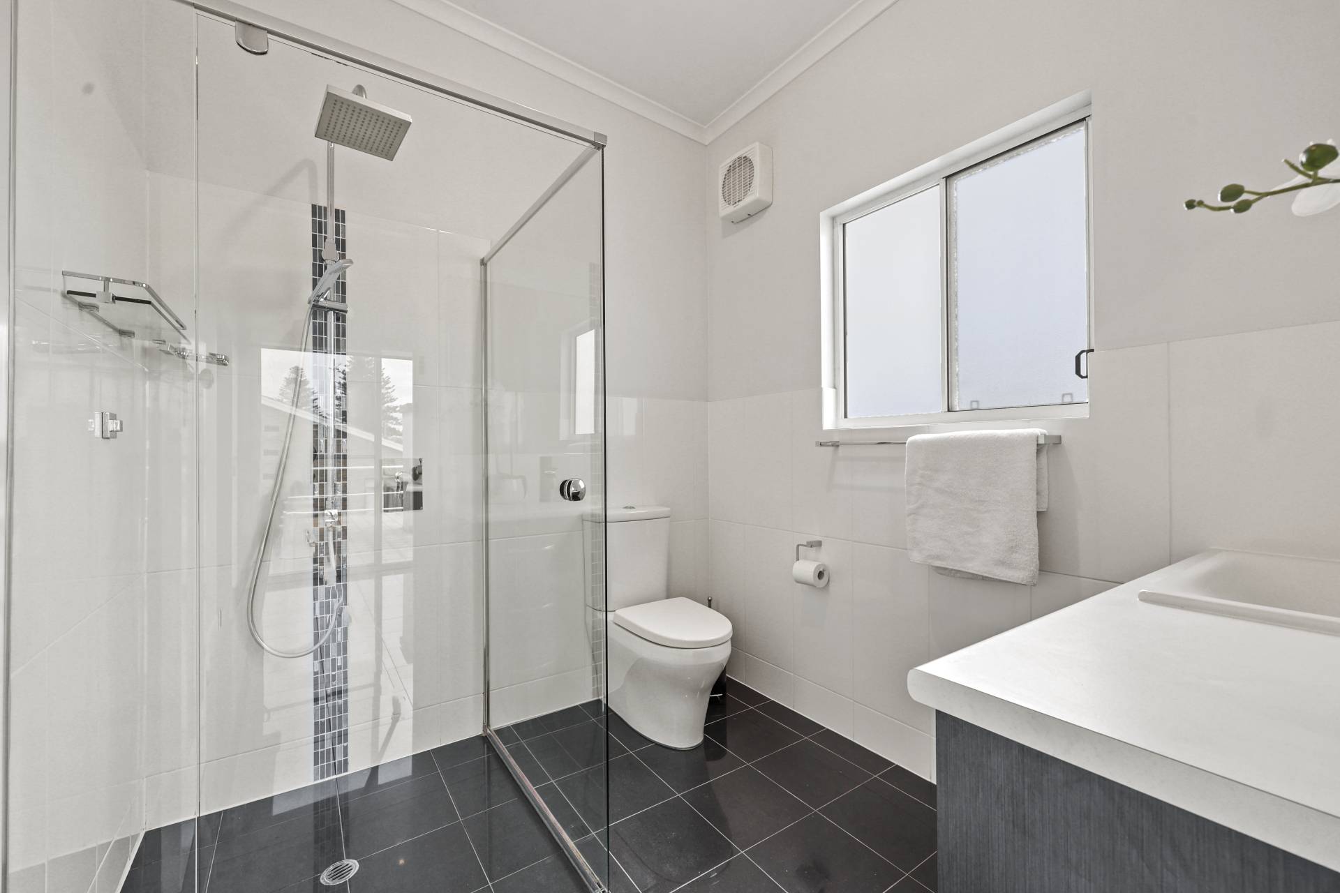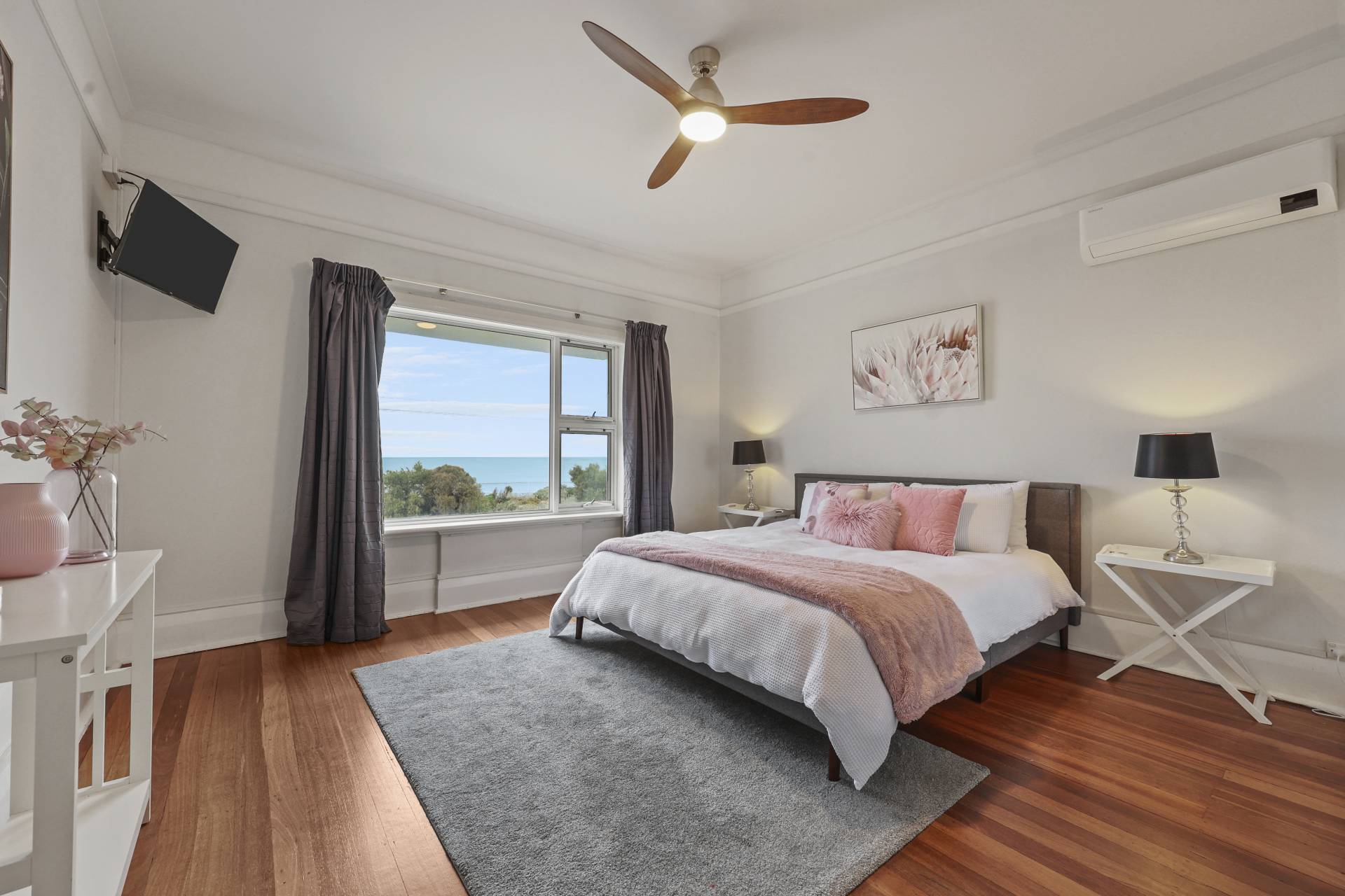 2 spacious bedrooms with queen beds, ceiling fan and split system air con and uninterrupted ocean views – wake up to the sound of waves and a picture-perfect horizon