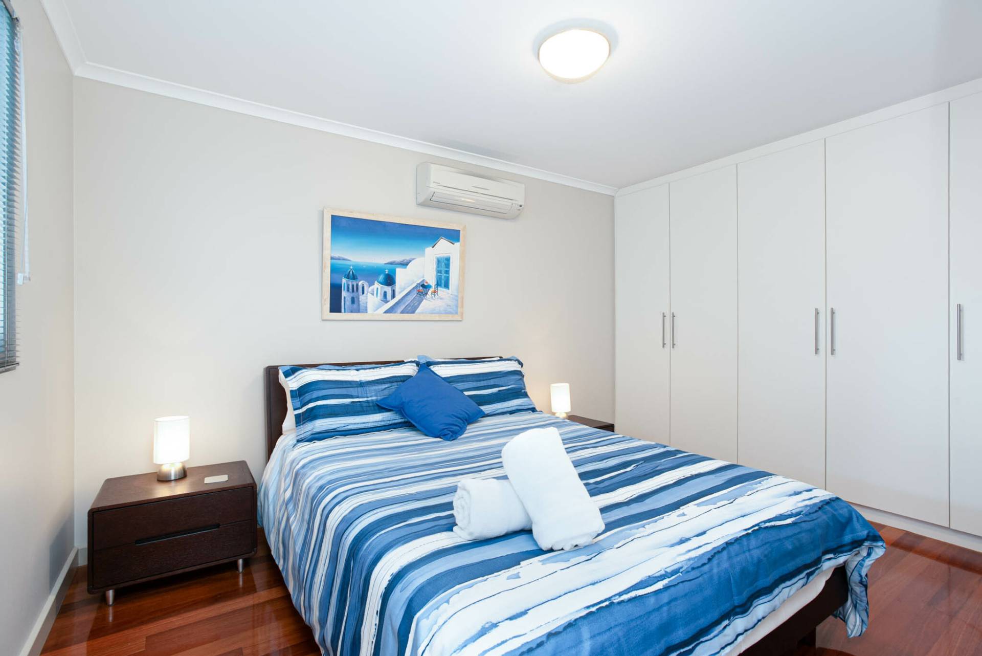 This light-filled apartment is designed for comfort and convenience. The main bedroom features a queen bed, split system air conditioning, a walk-in robe and ensuite. The second bedroom also includes a queen bed, split system air conditioner and built-in robes.