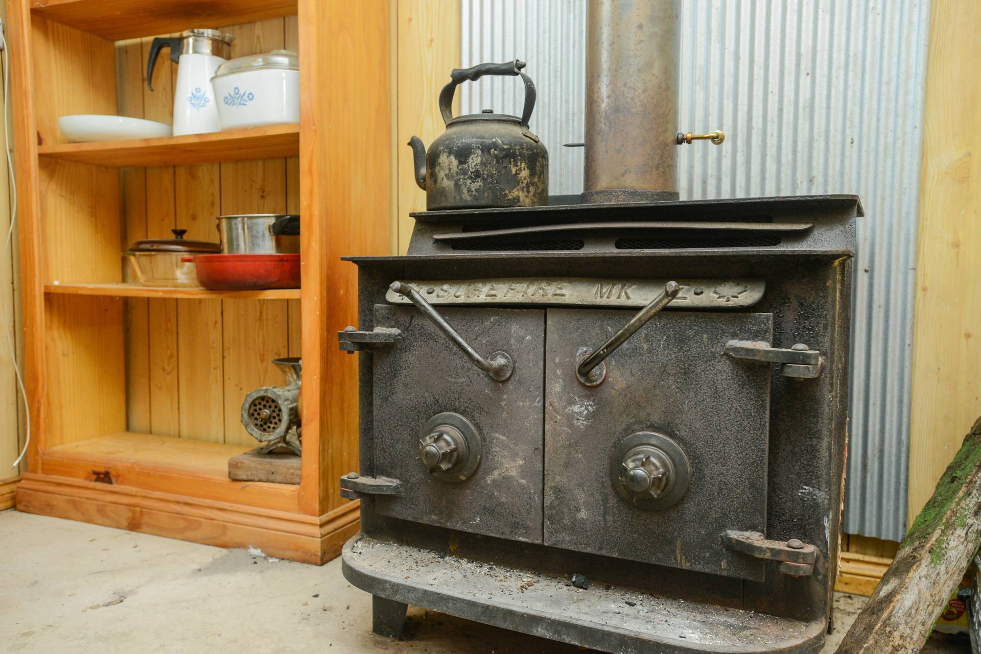 Large shed with a portion used for storage and the other half converted as a little shack with kitchenette, living area, bedroom and bathroom.