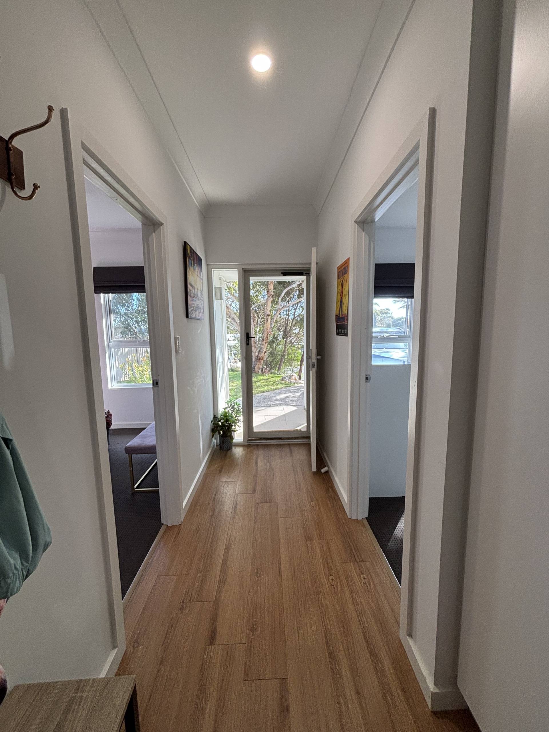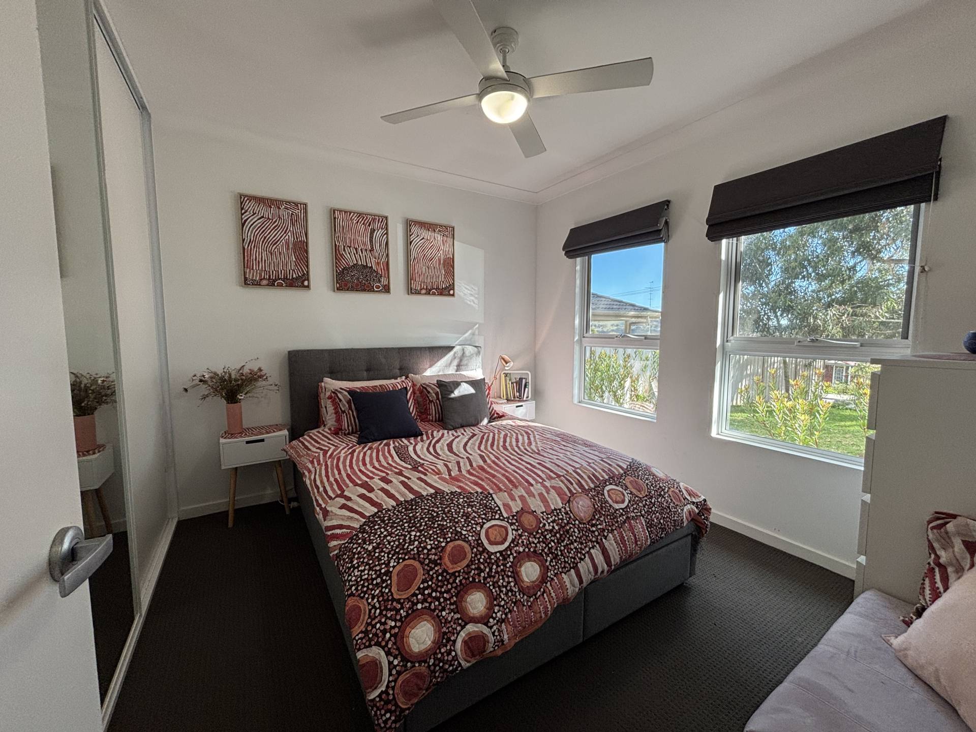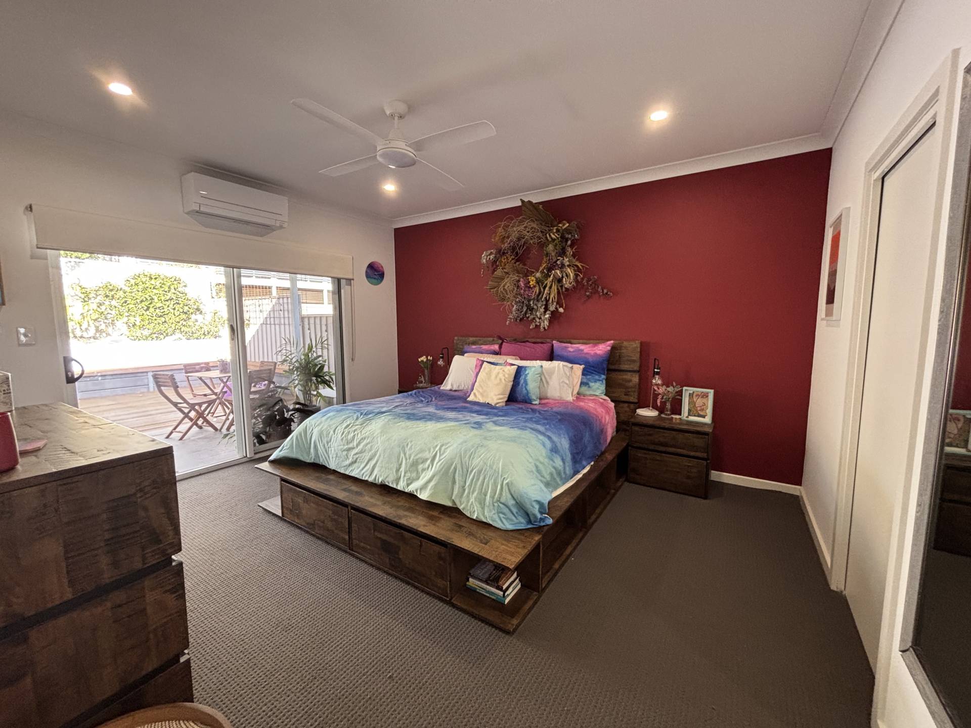 • Master bedroom with built-in robe, garden access, and ensuite-style entry to bathroom