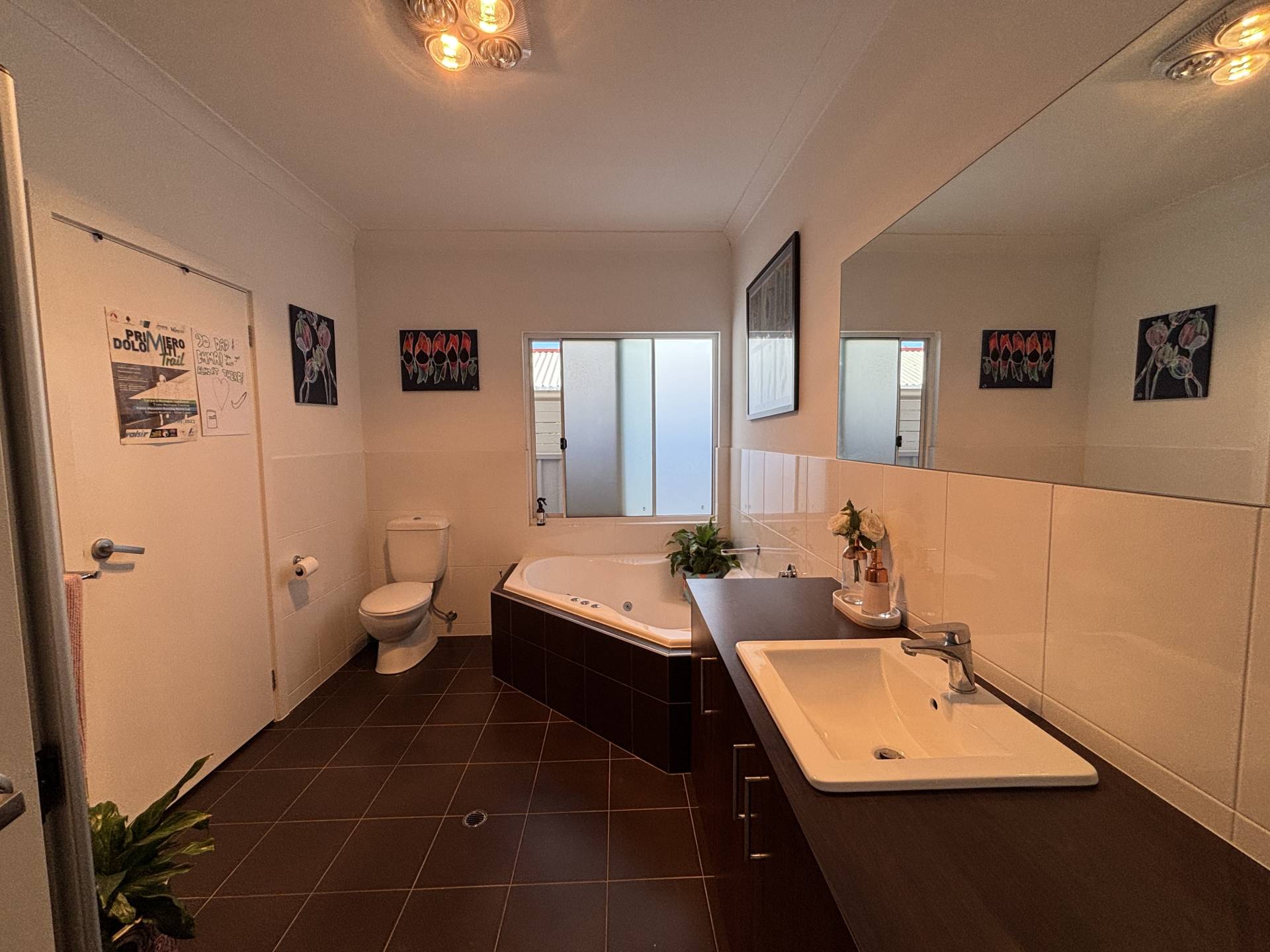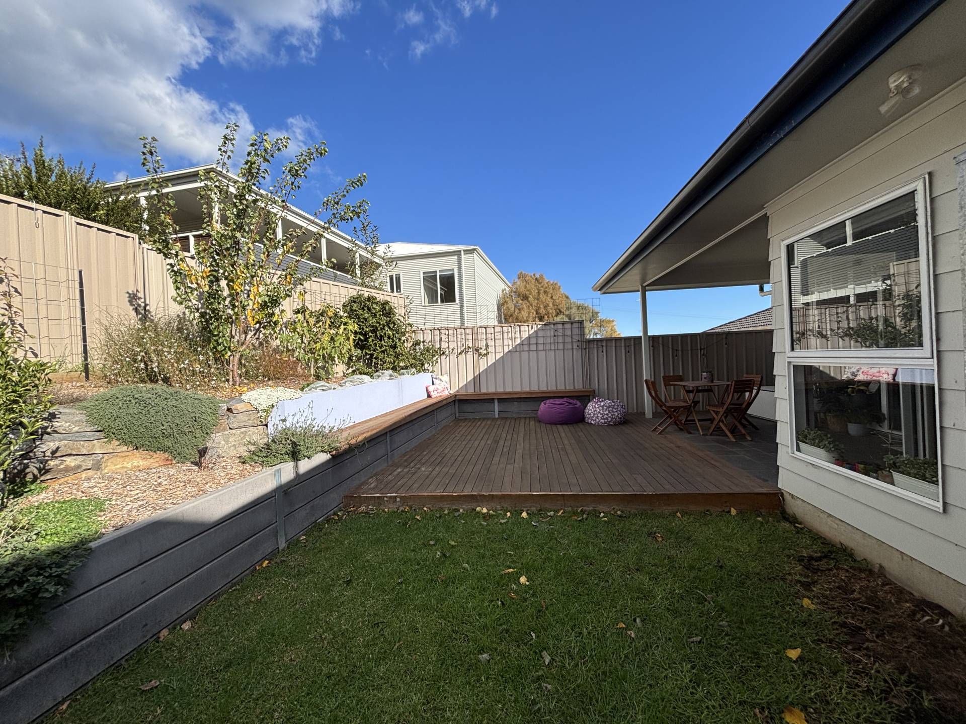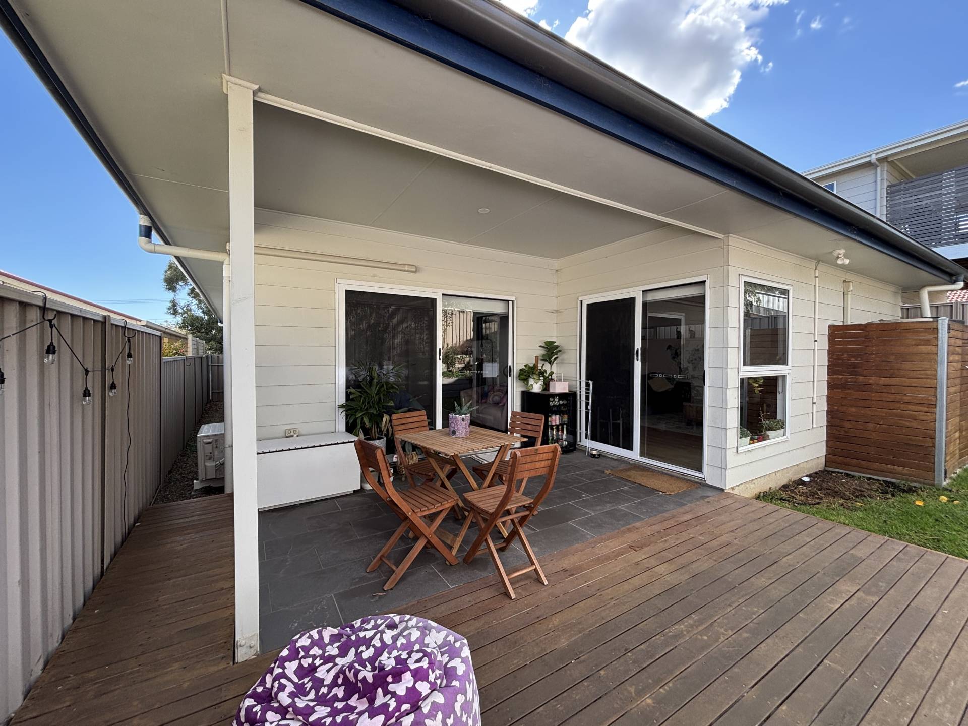 • Master bedroom with built-in robe, garden access, and ensuite-style entry to bathroom