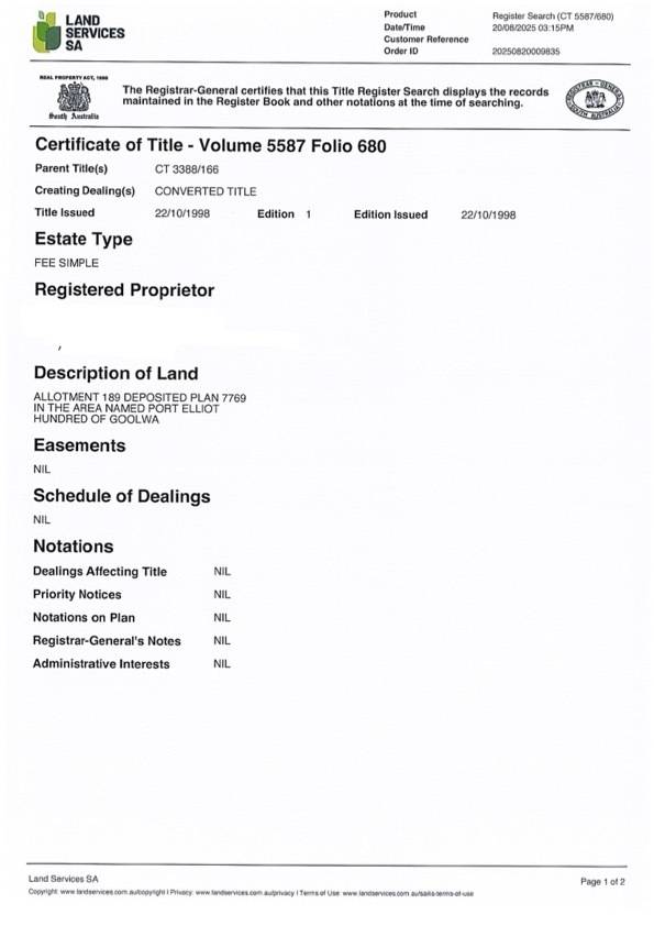 In Port Elliot, opportunities like this are few and far between. Whether you’re looking to build now or land bank for the future, this is the kind of location that only grows more desirable with time.