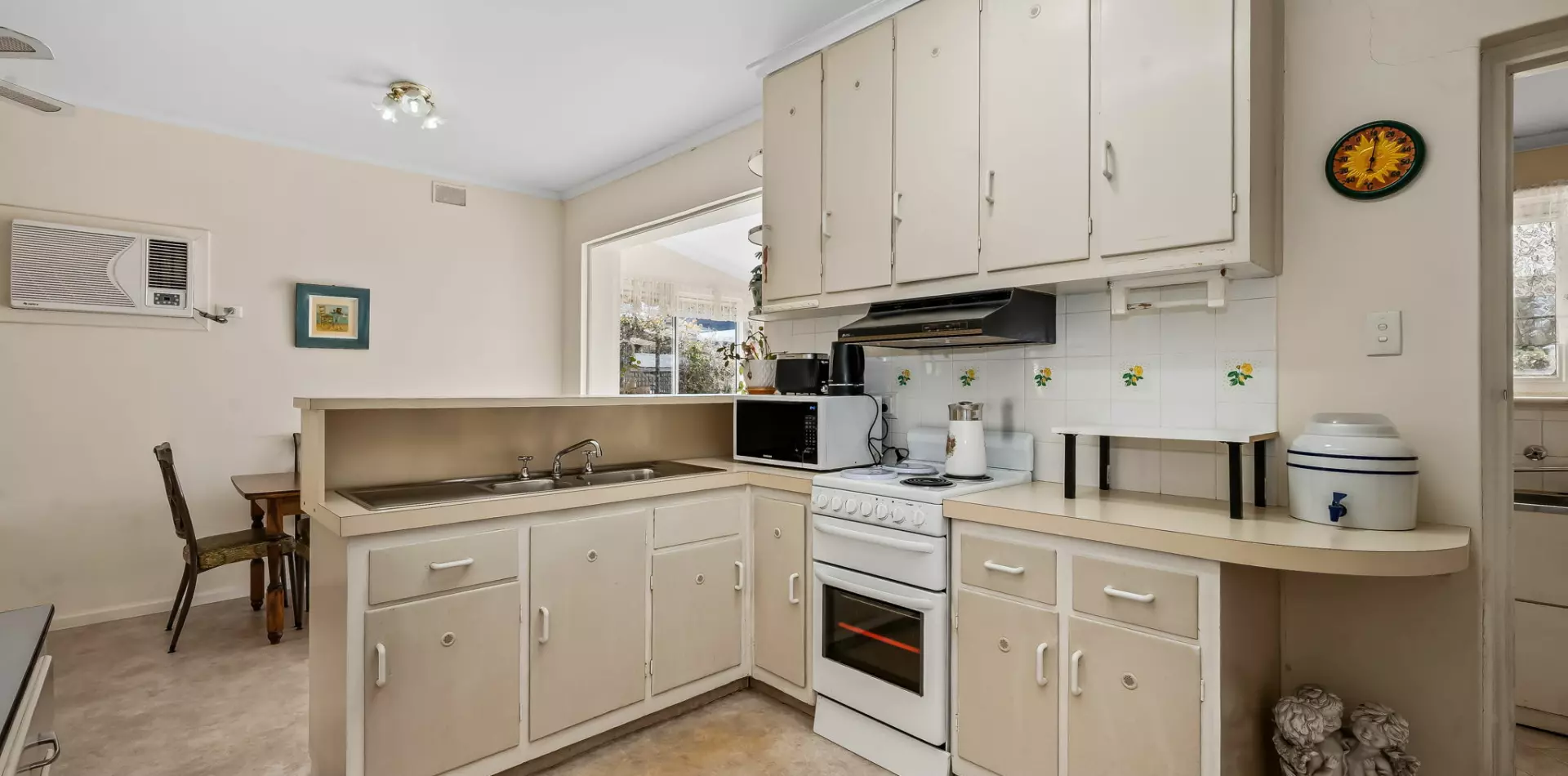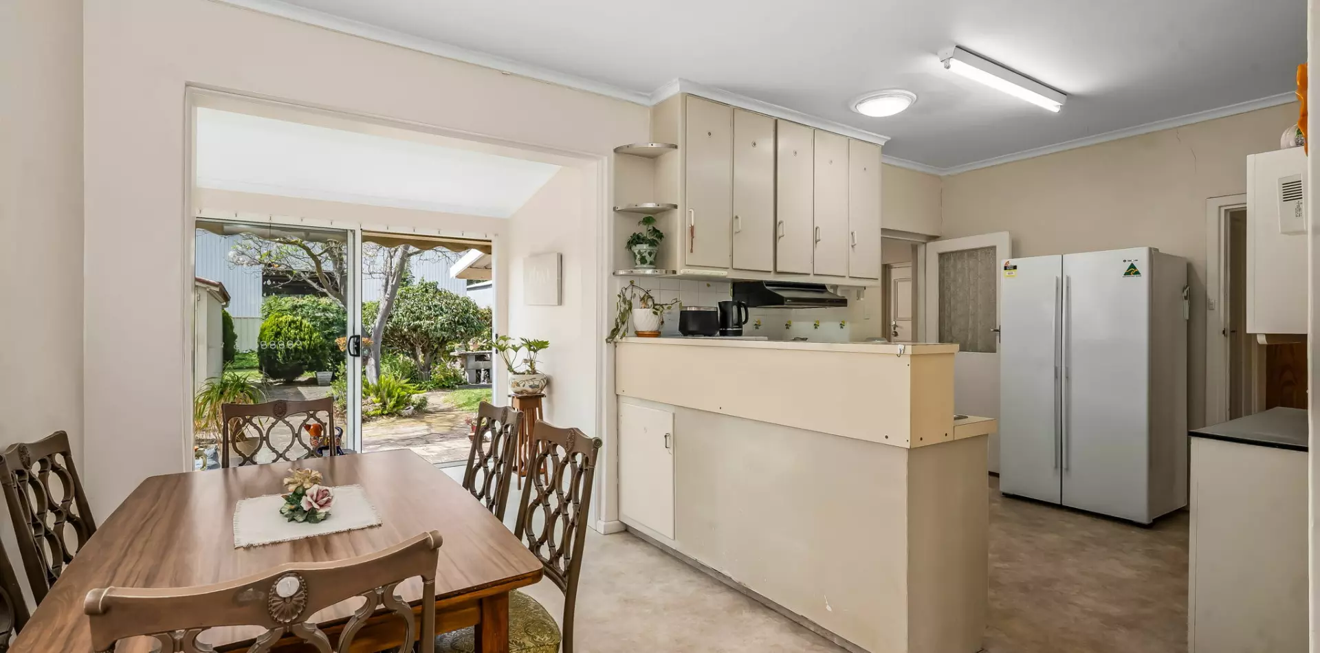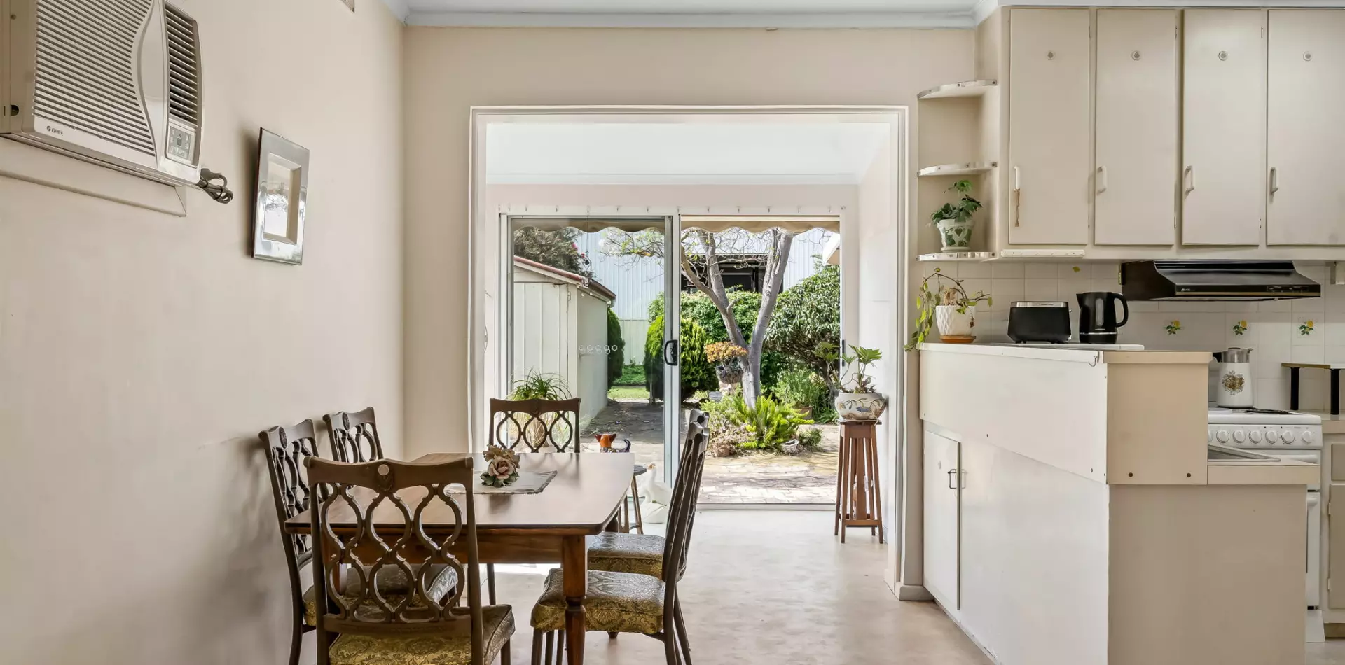 • Reverse-cycle air conditioning and ceiling fan in combined kitchen/dining