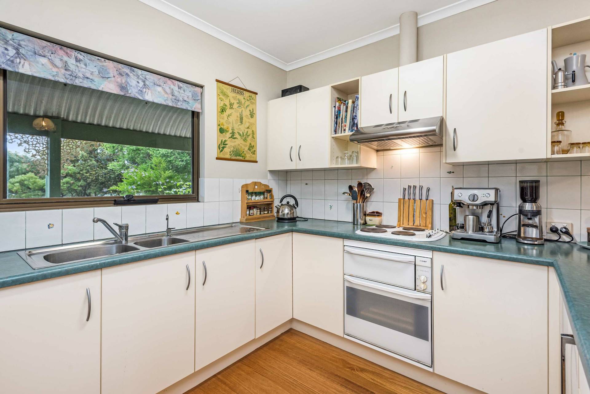 - Country style kitchen with oven and extractor fan & pantry