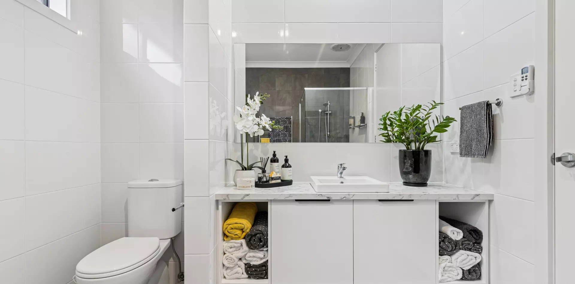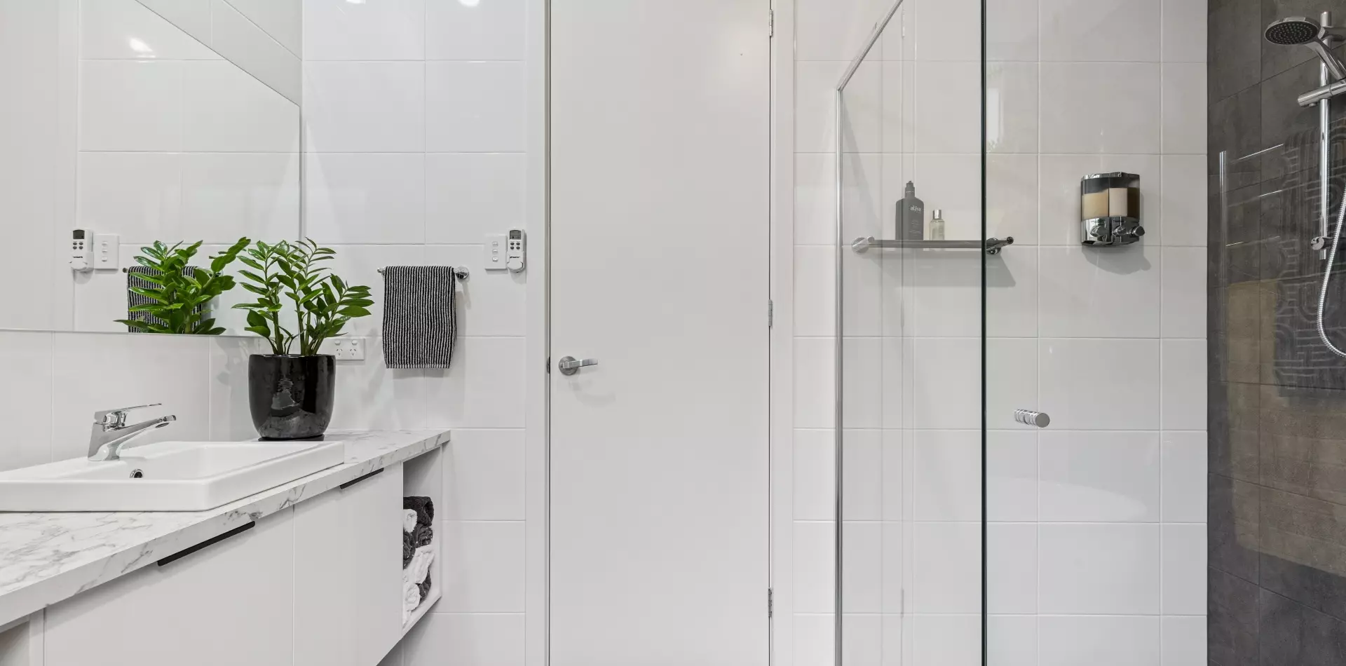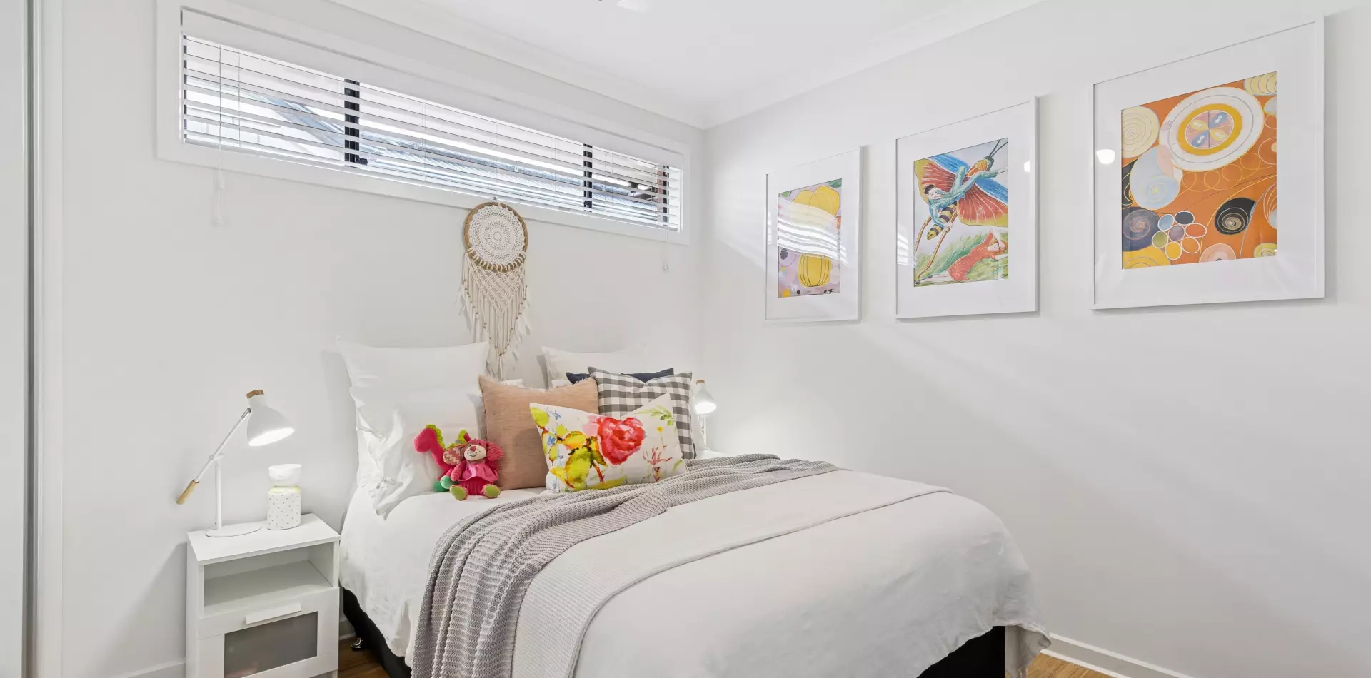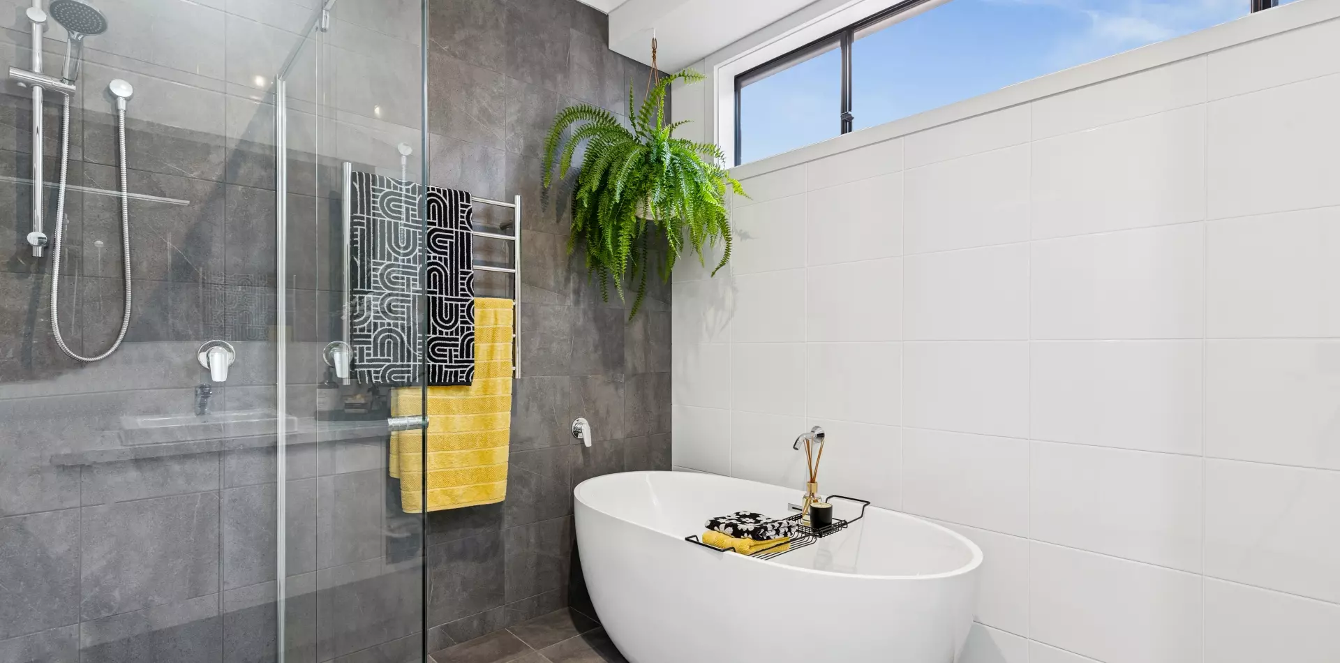 Inside, you’re welcomed by sleek finishes and thoughtful details, laminate timber-finish floors underfoot, a kitchen that’s as striking as it is functional with its waterfall island, 900mm gas cooktop, and bold black accents. The spaces are versatile with two living areas. Every element from the freestanding bath to the sheer curtains and timber venetians has been carefully chosen to create warmth, style, and a sense of home.