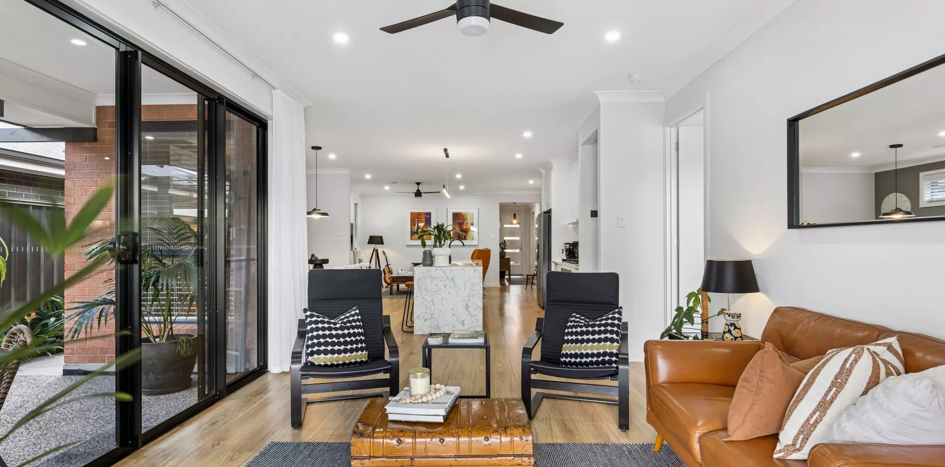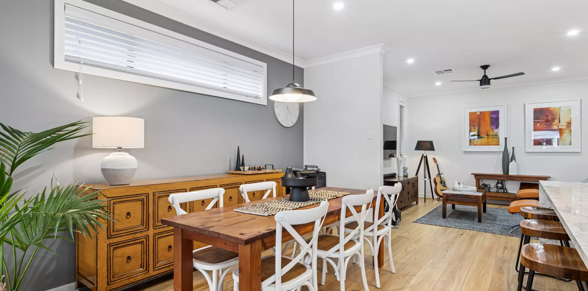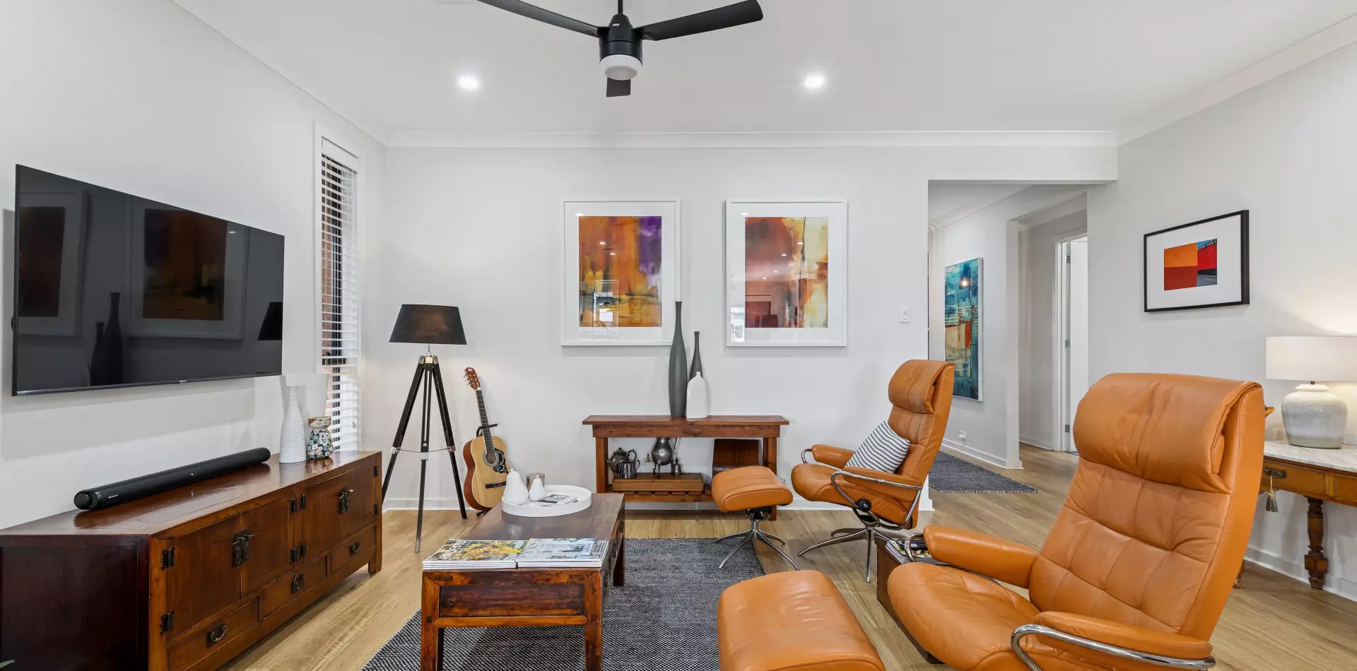 • Spacious open plan living with ducted air conditioning, ceiling fans, downlights and timber flooring