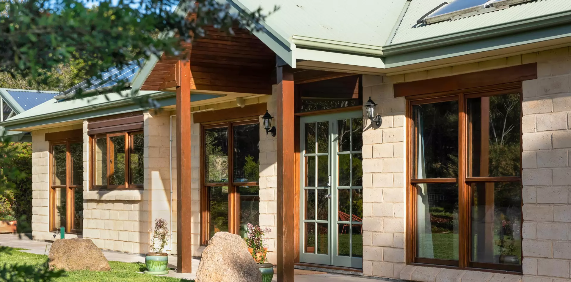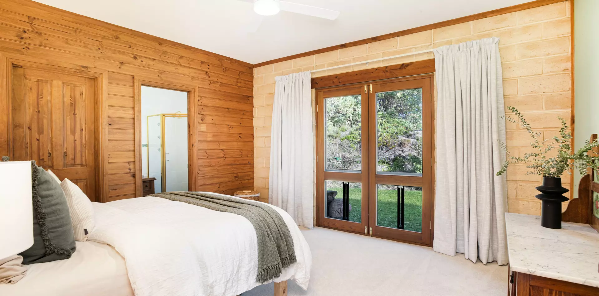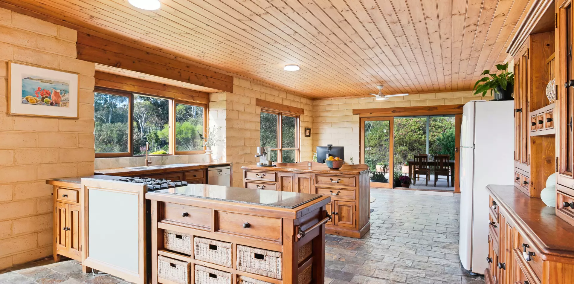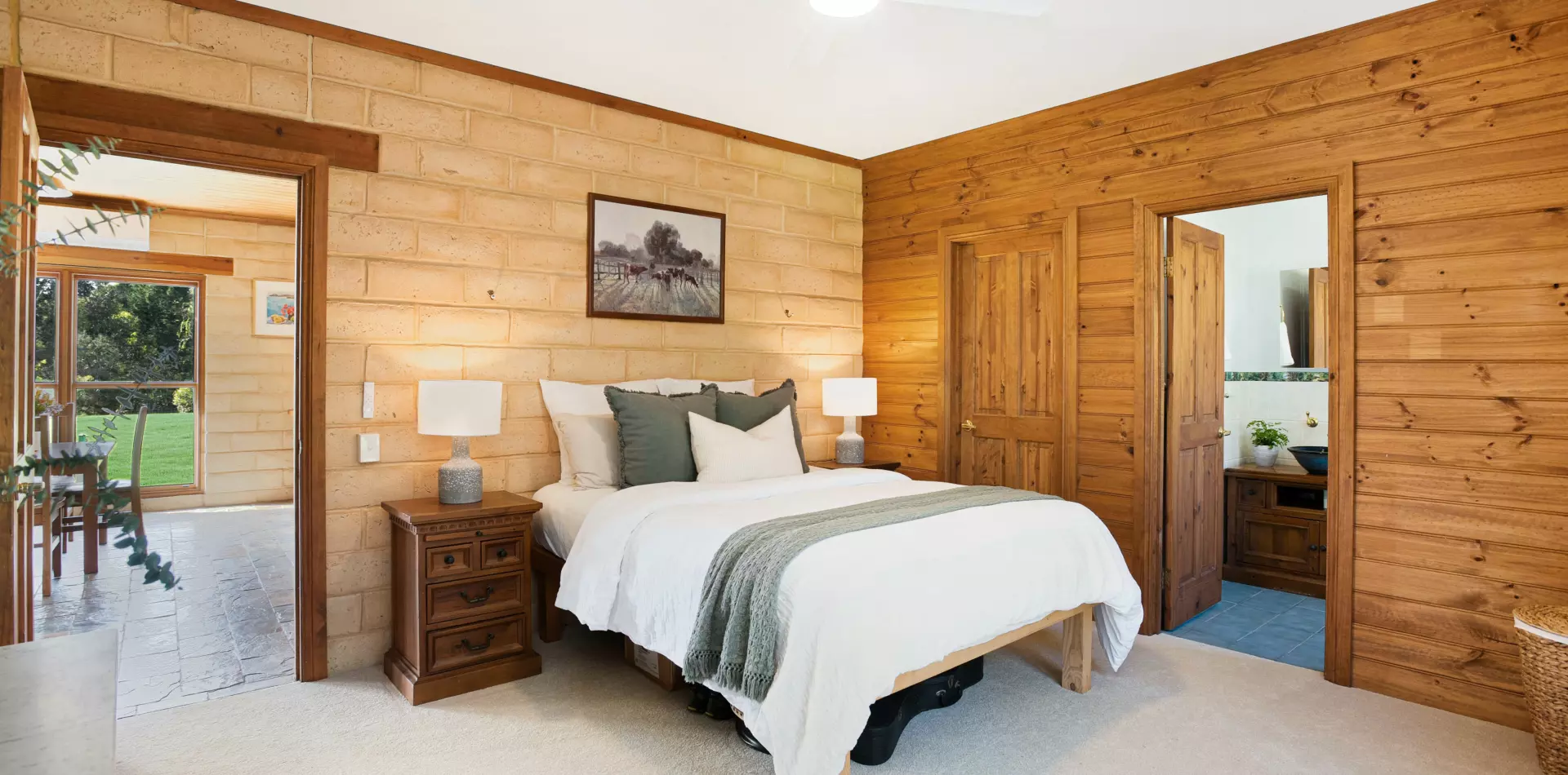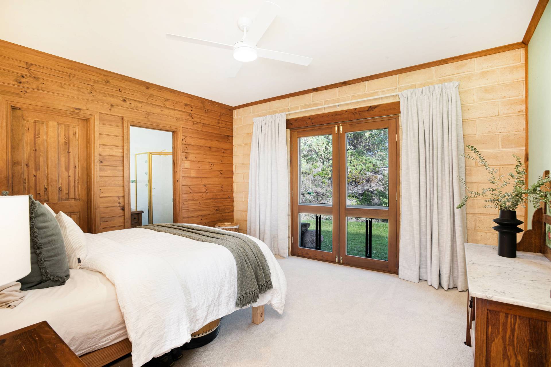 Homes built from timbercrete are renowned for their sustainability and strength. The thick walls act as natural insulation, keeping interiors cooler in summer and warmer in winter while also delivering acoustic comfort and an earthy beauty that feels instantly grounding. Complemented by timber-lined ceilings, timber windows, and feature lintels, the craftsmanship in this home is unmistakable.