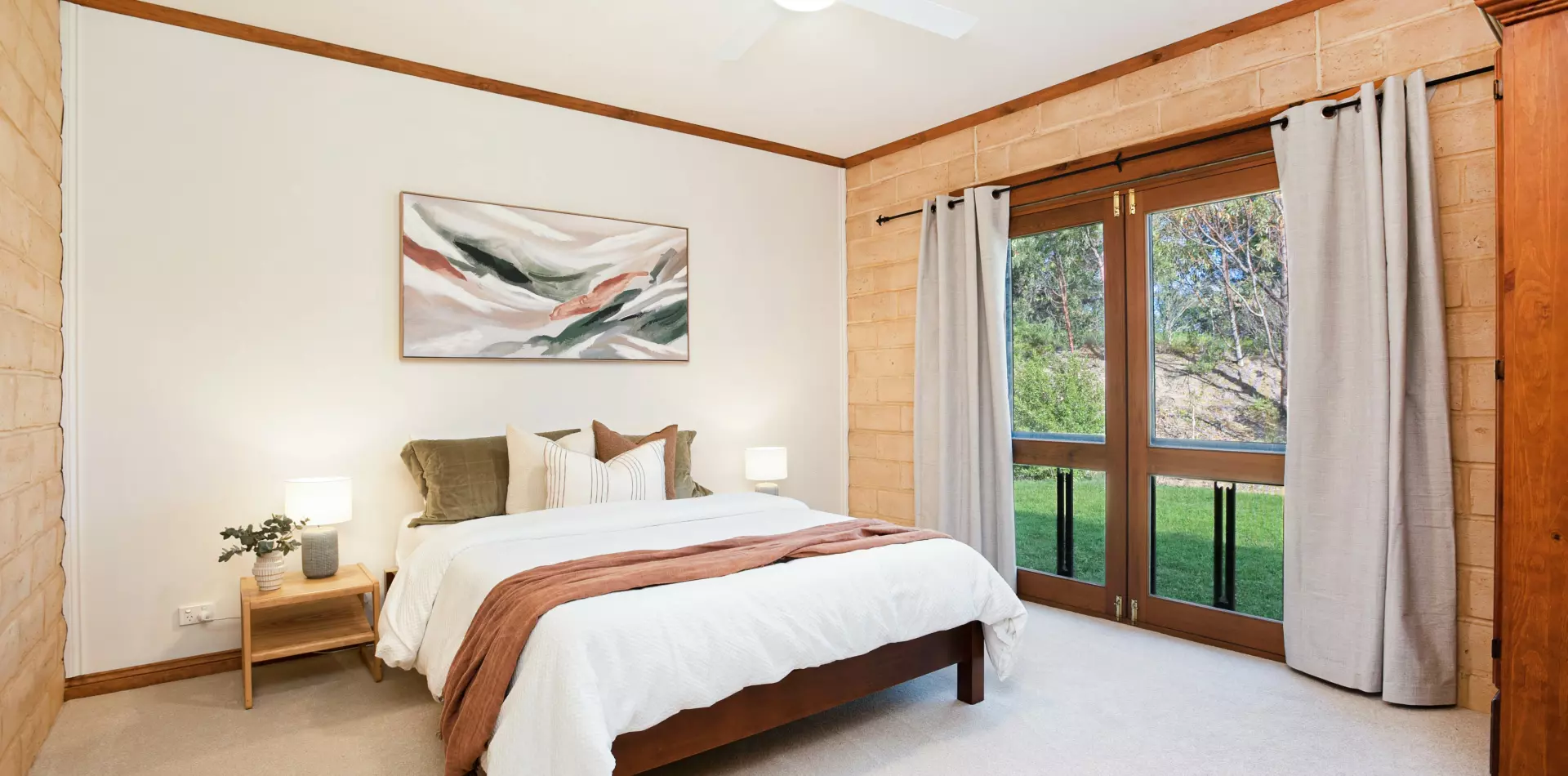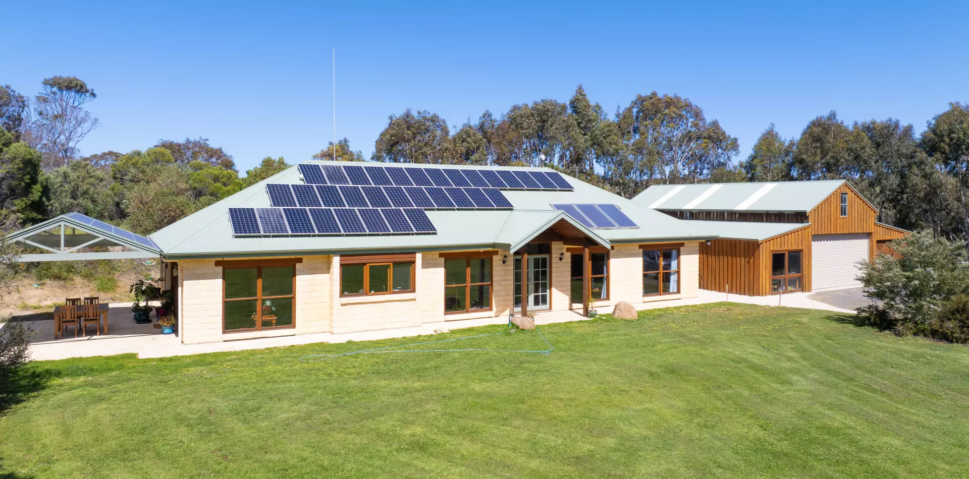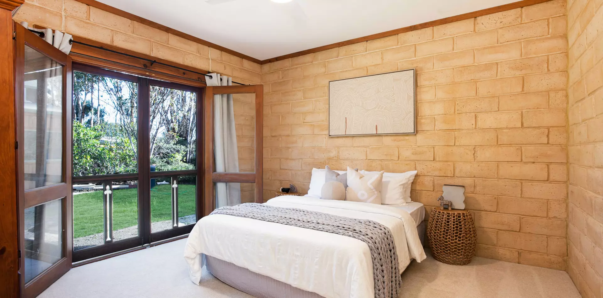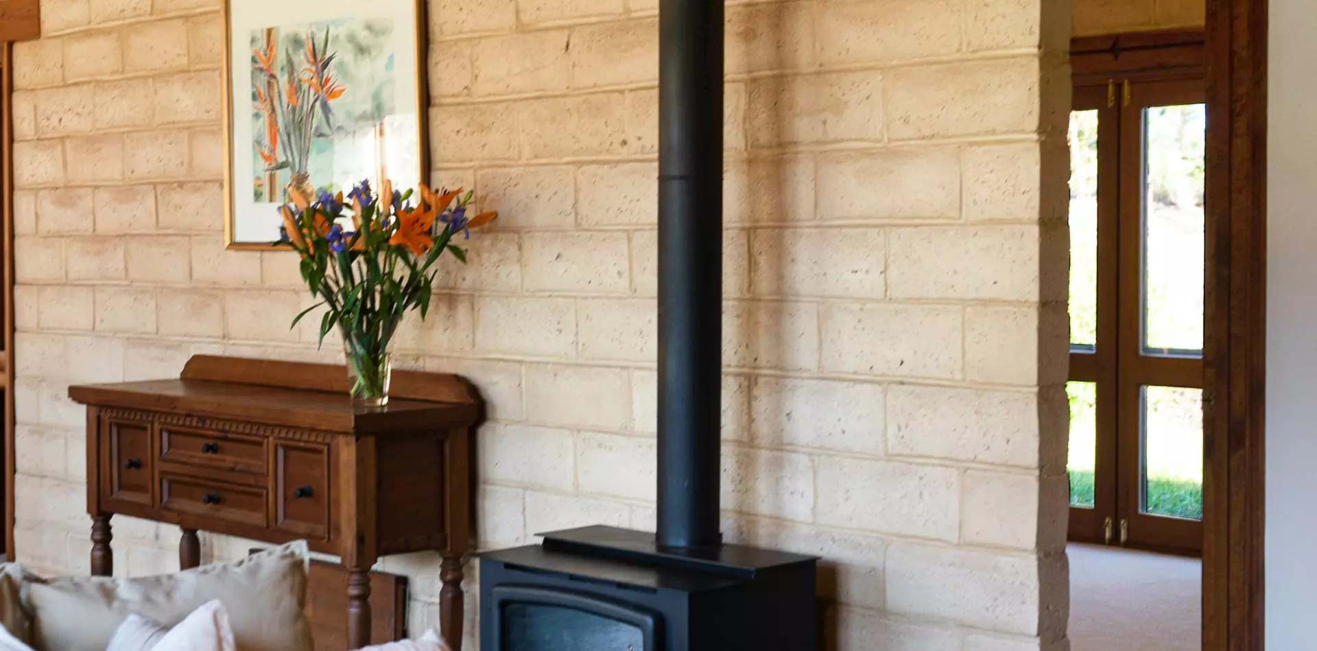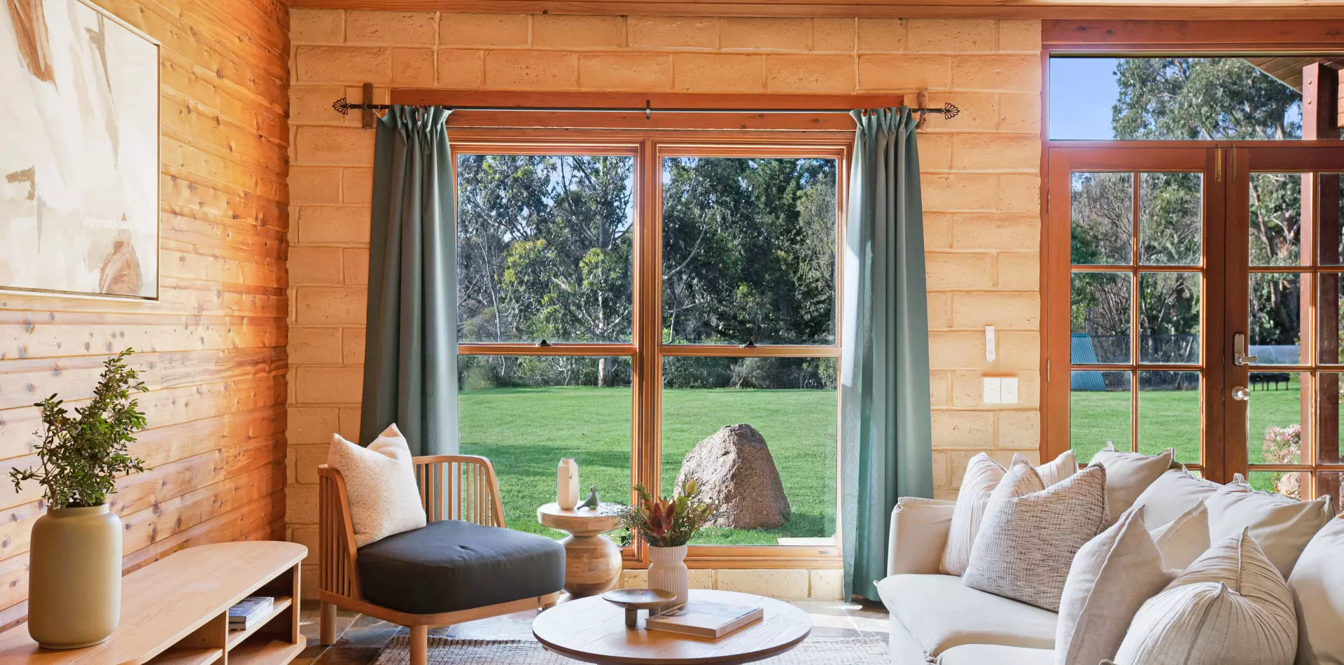 Homes built from timbercrete are renowned for their sustainability and strength. The thick walls act as natural insulation, keeping interiors cooler in summer and warmer in winter while also delivering acoustic comfort and an earthy beauty that feels instantly grounding. Complemented by timber-lined ceilings, timber windows, and feature lintels, the craftsmanship in this home is unmistakable.