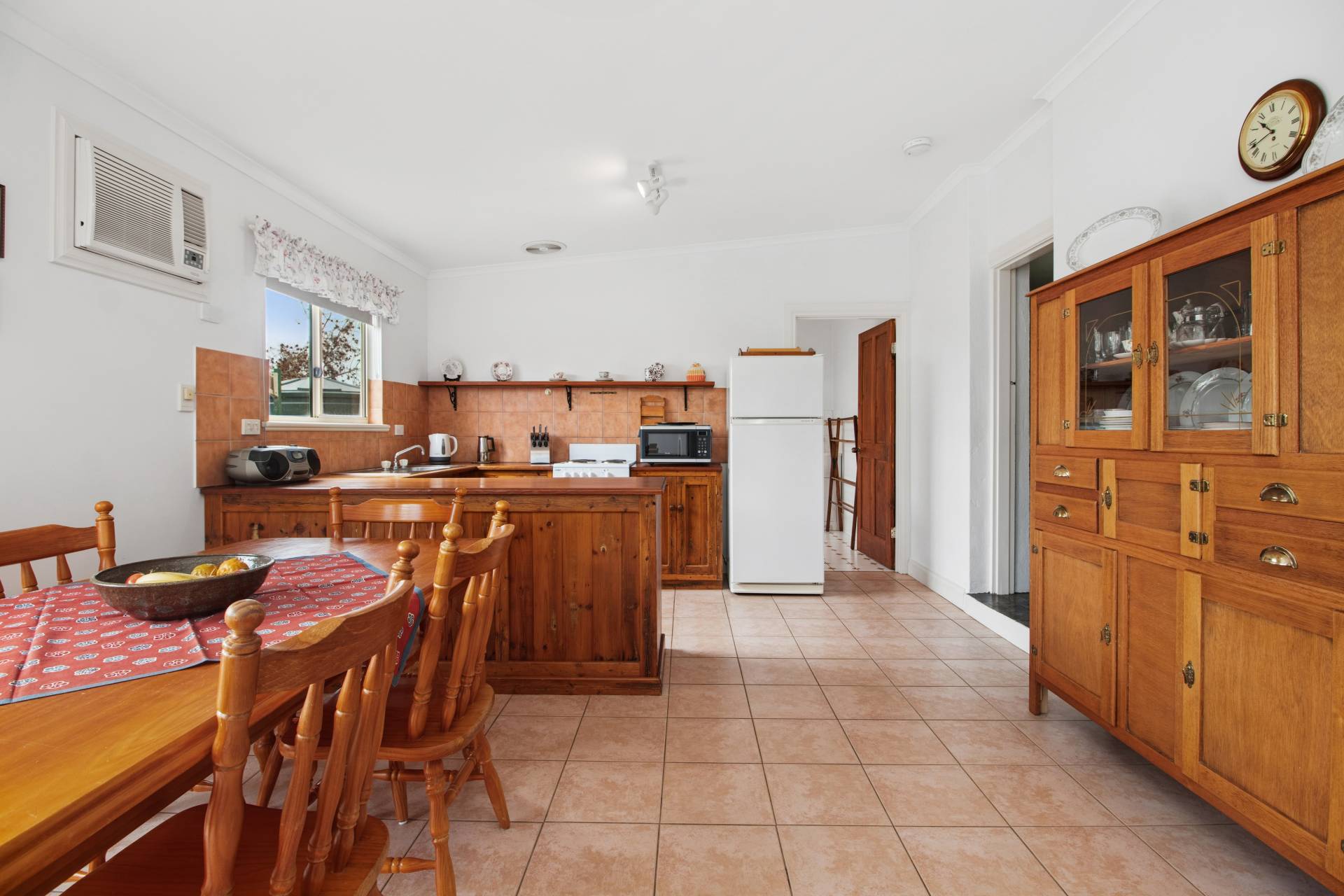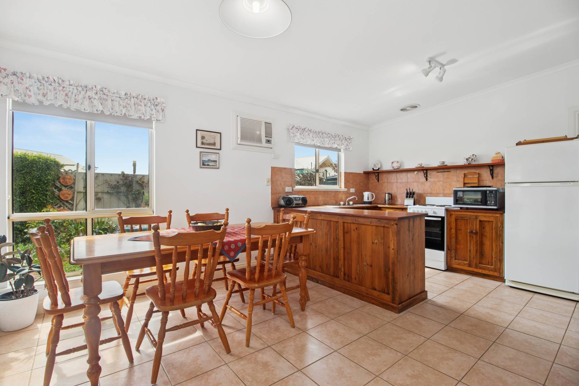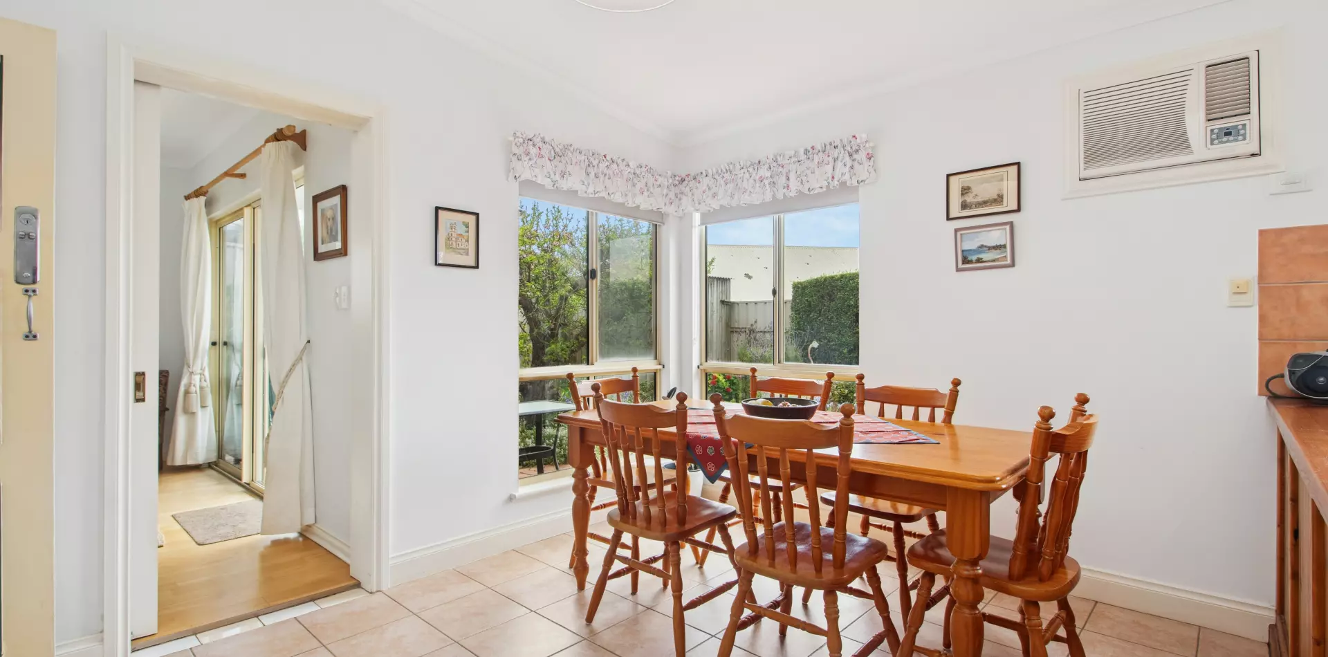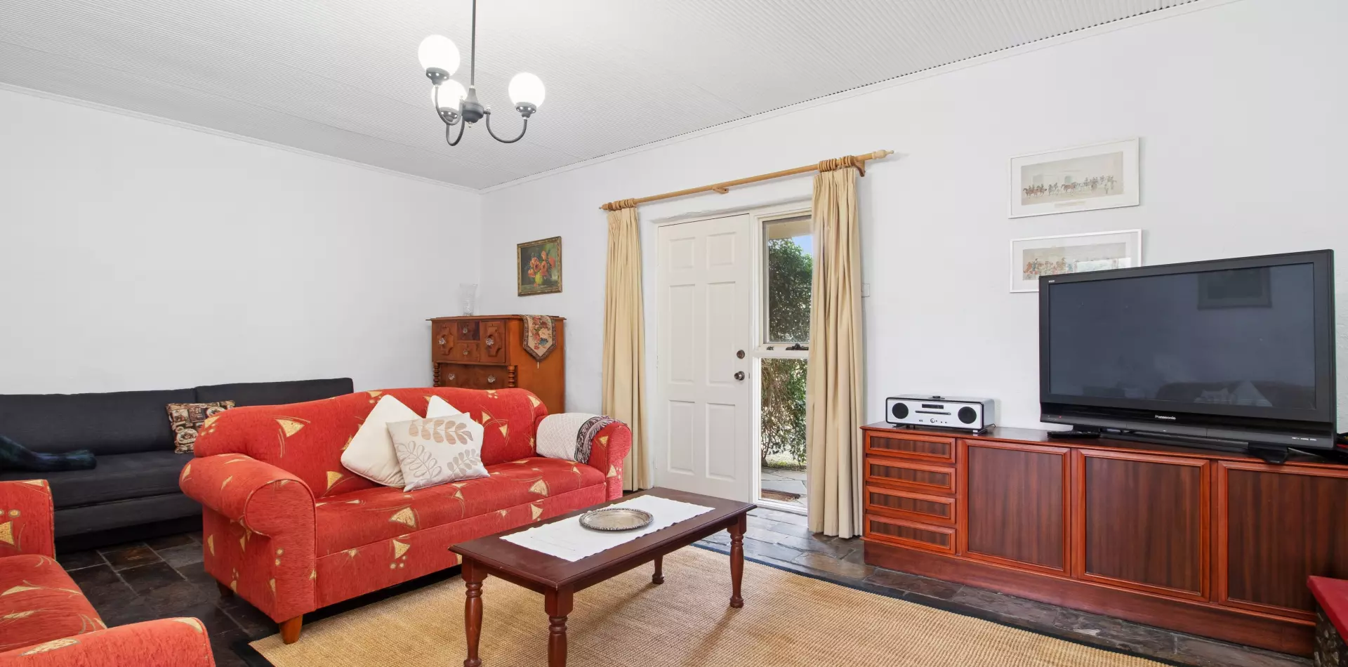 Step inside and discover character at every turn, the kitchen, lovingly constructed from original recycled timber, is the heart of the home, overlooking the dining space and beyond to a sun-filled leafy rear garden. Two bedrooms provide comfort and practicality, the master complete with built-in robe and ensuite, while a large, combined laundry and second bathroom sit conveniently off the kitchen. A cosy lounge with operational iron fireplace and timber mantle creates a warm retreat, complimented by a ceiling fan for year-round comfort.