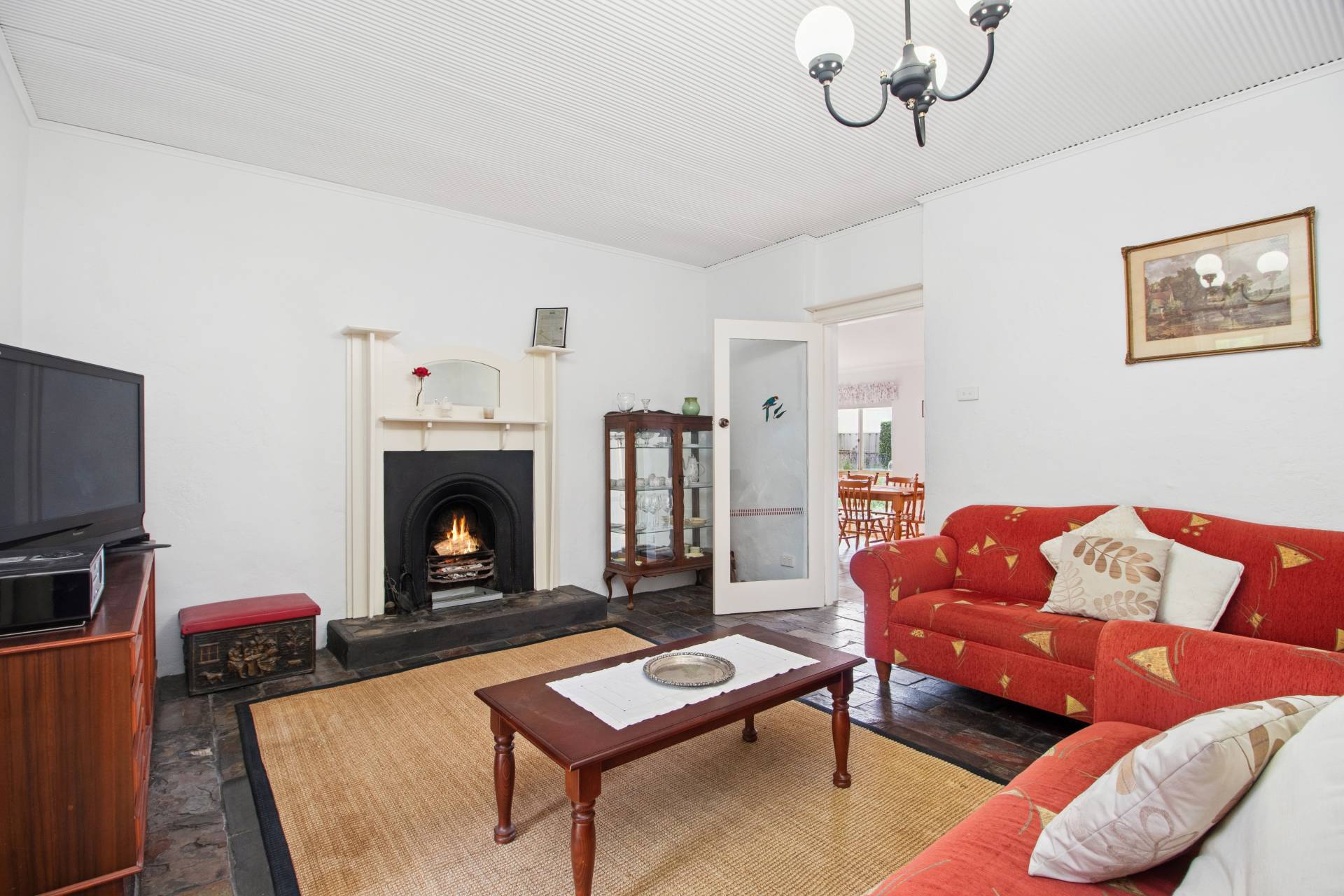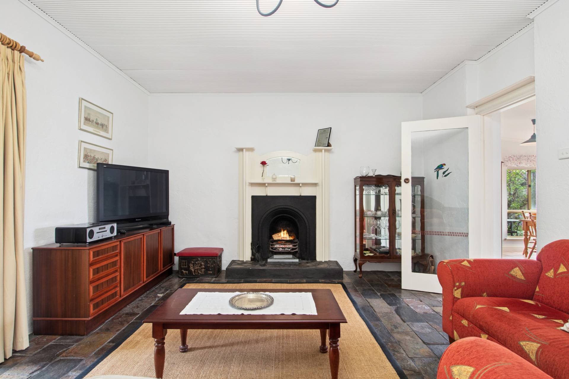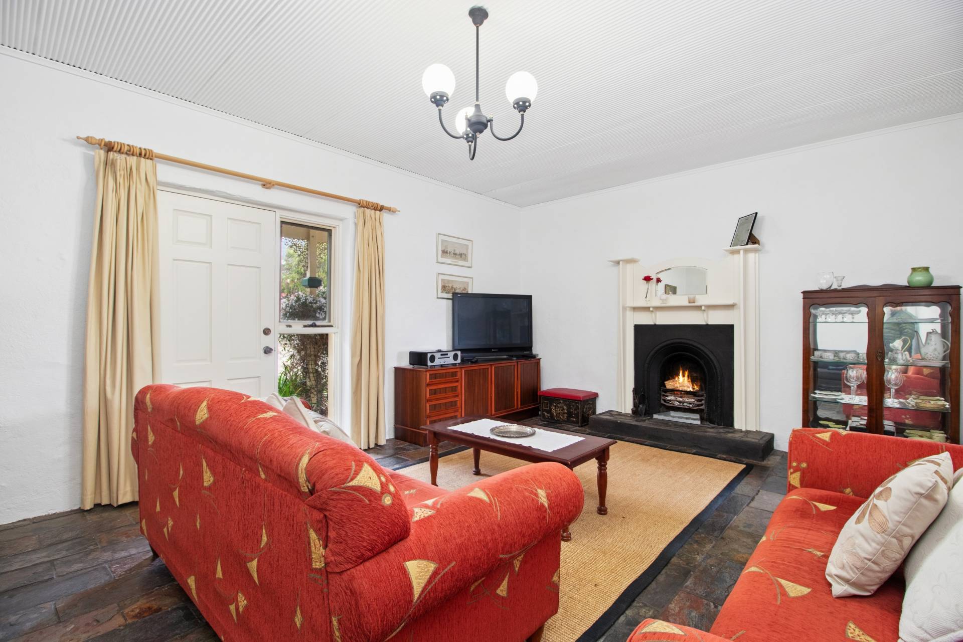 • Lounge with fully operational iron fireplace and timber mantle
