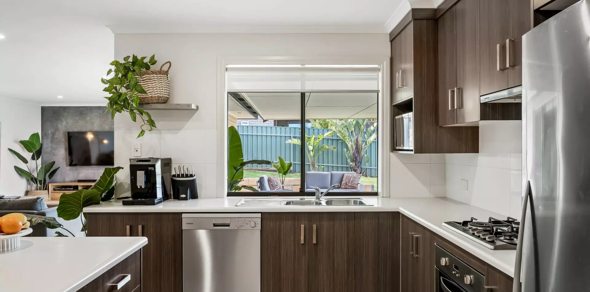 • Modern kitchen with gas cooktop, island bench & dishwasher