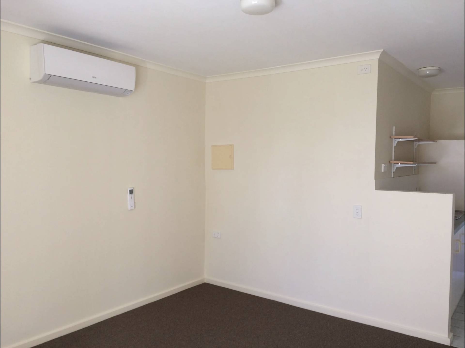 • Open plan living area with floating floorboards, vertical blinds & split system reverse cycle air conditioning