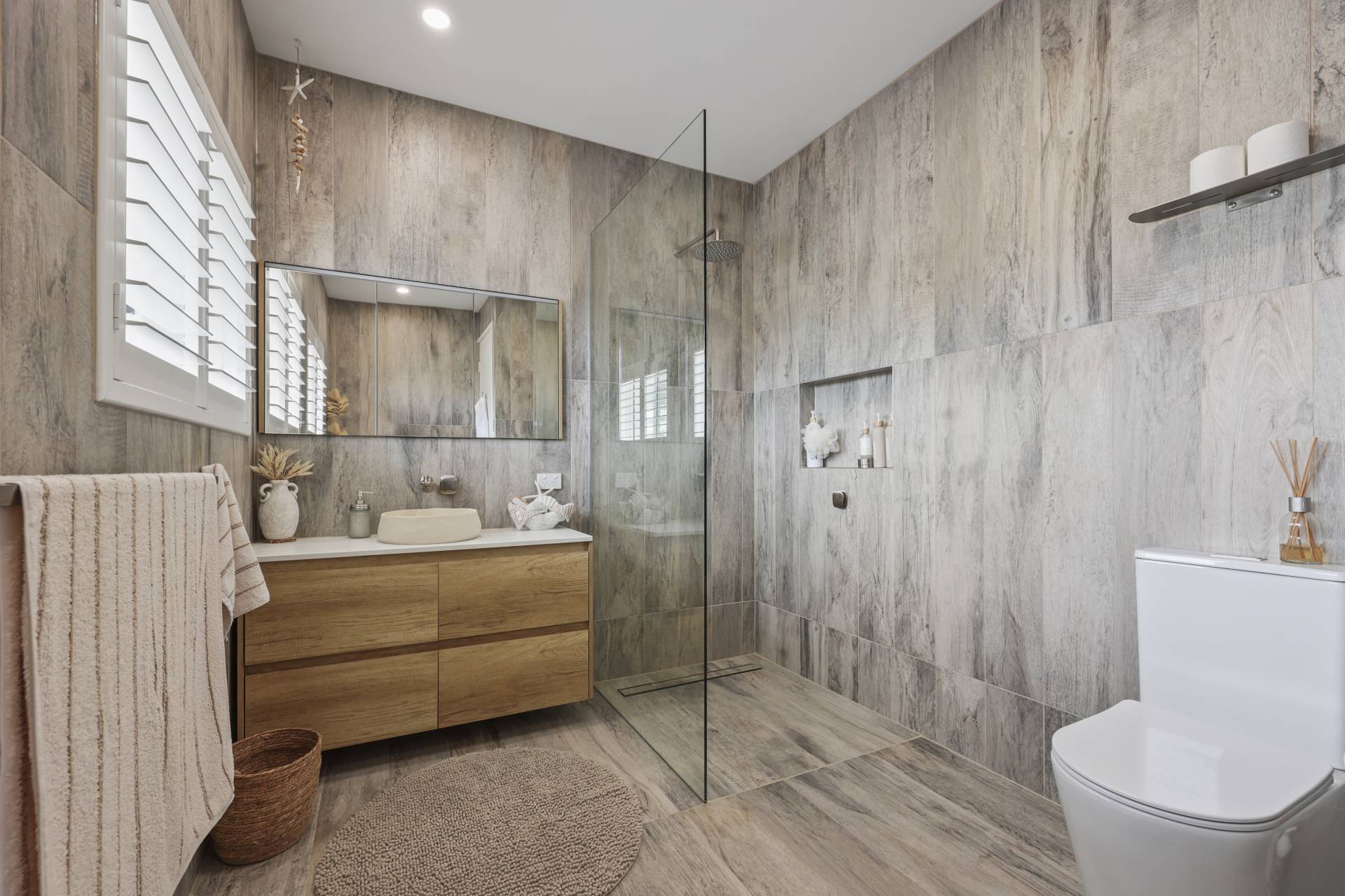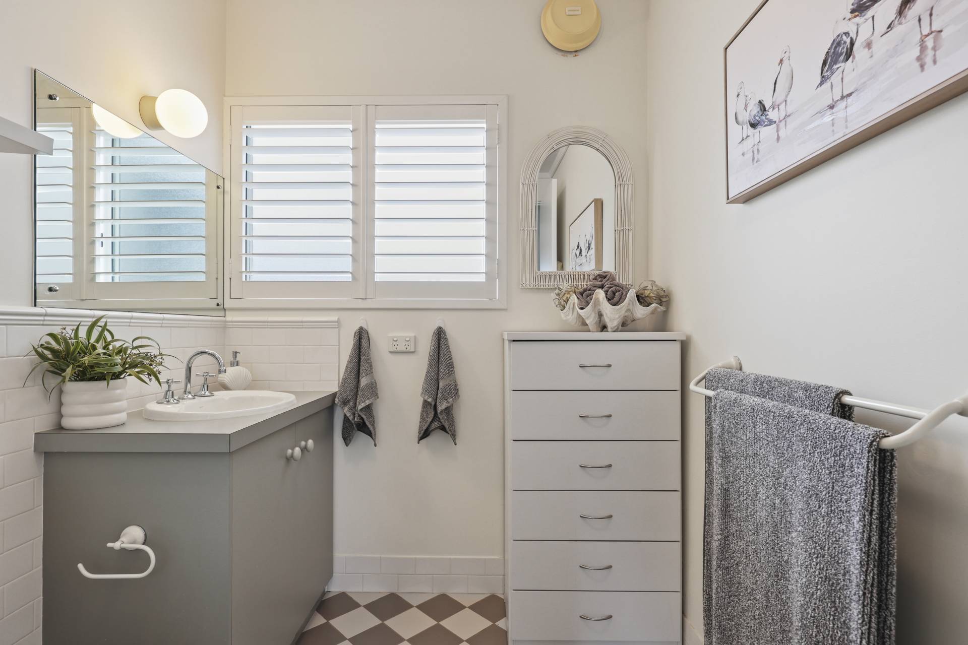 The upstairs bathroom has also been completely renovated, offering a contemporary design with elegant fixtures and finishes – the perfect complement to the home’s light coastal vibe. Excellent under-stair storage including a walk-in linen cupboard / storage room. Every detail has been considered for practical family living or comfortable holiday accommodation.