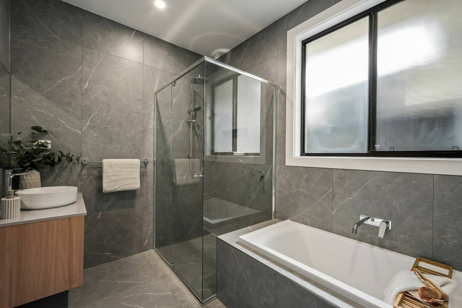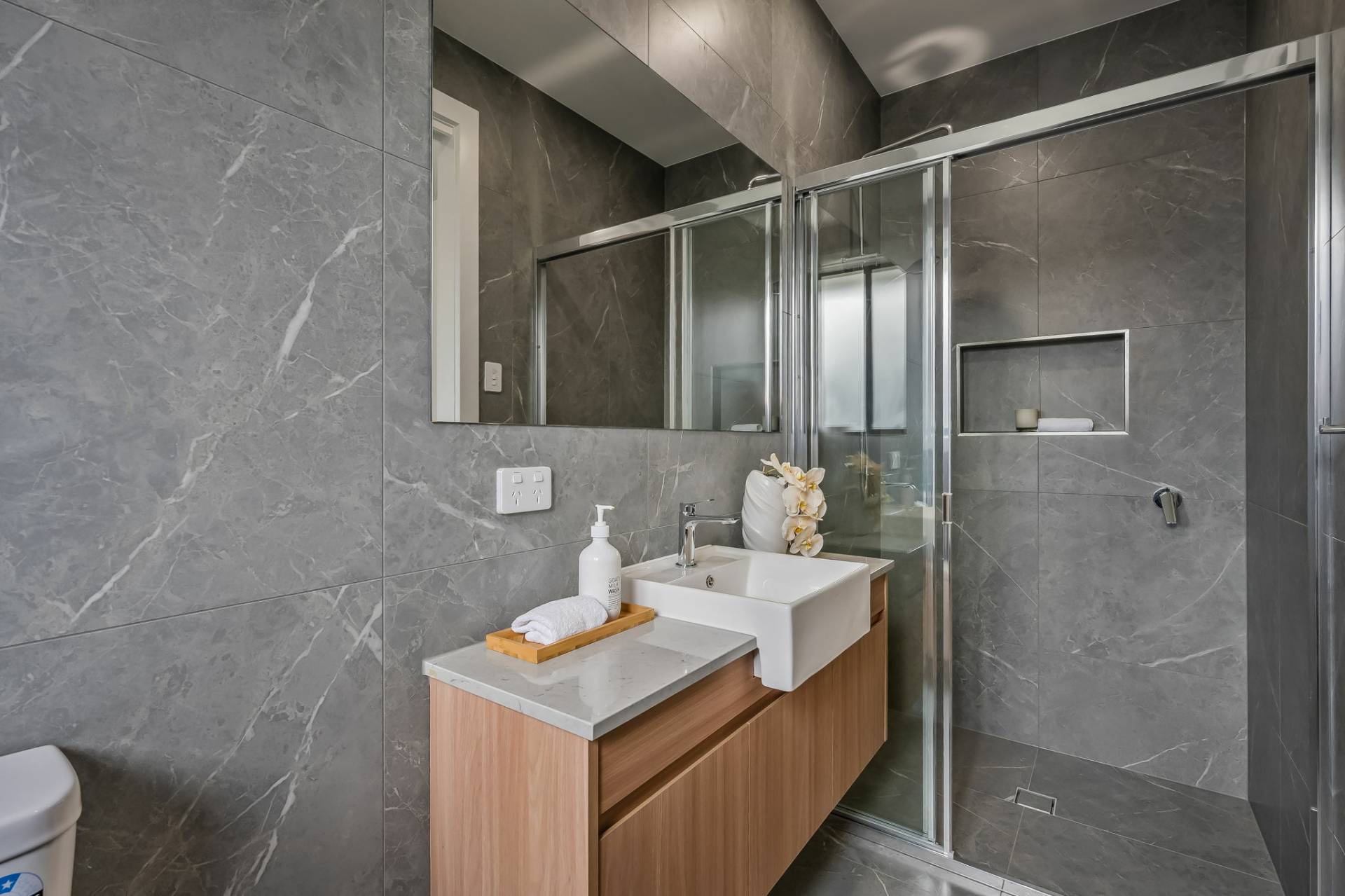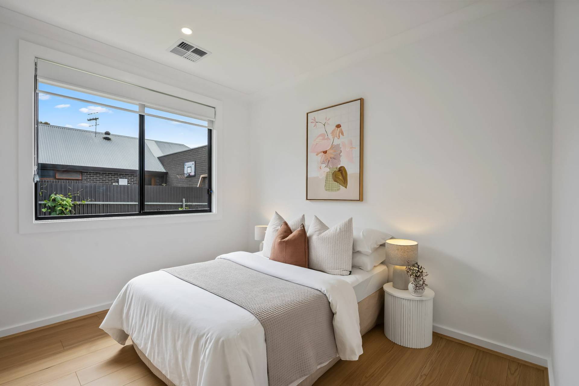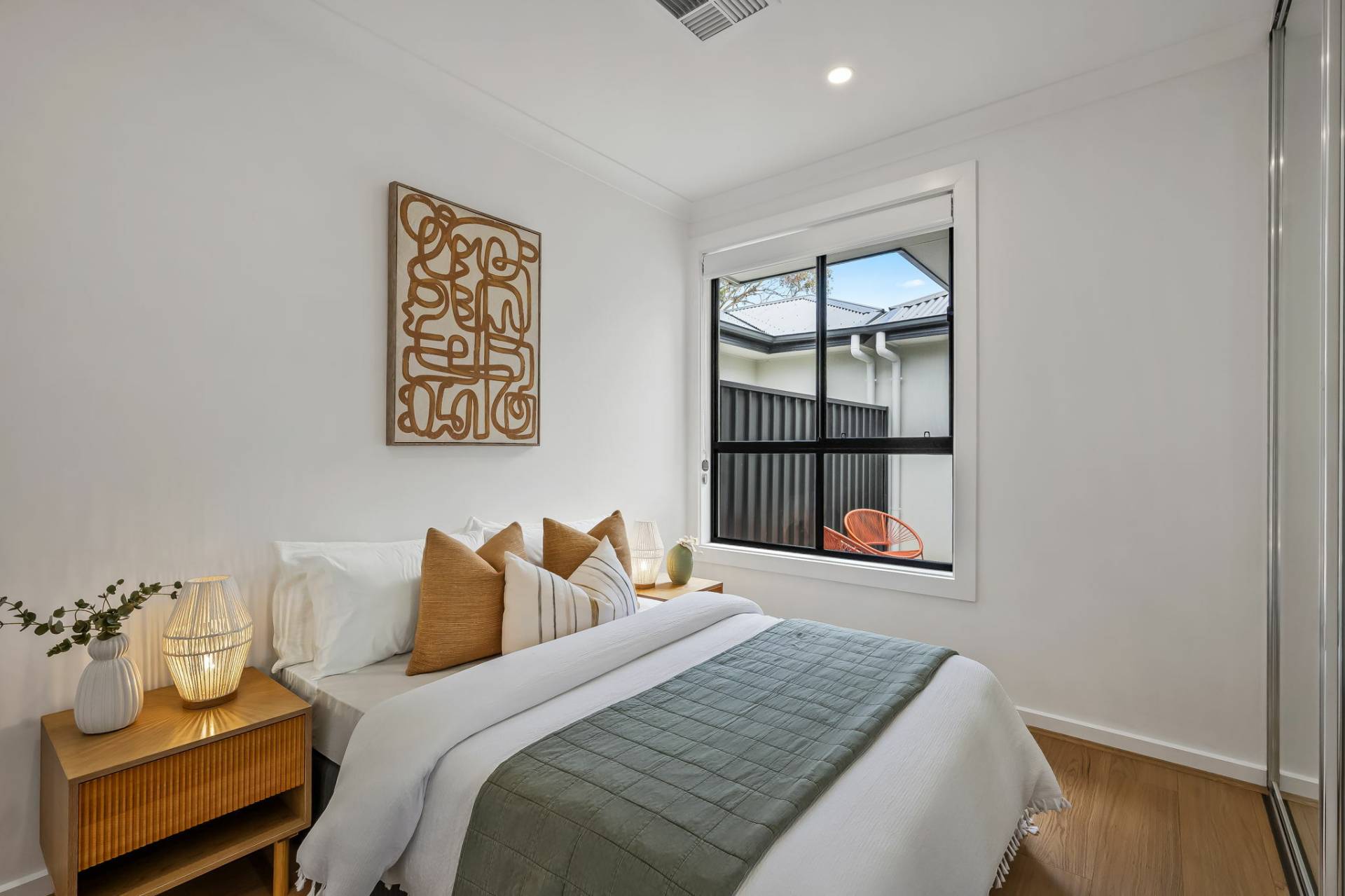 The spacious main bedroom offers a quiet sanctuary, complete with a walk-in robe and sleek ensuite bathroom. Thoughtfully positioned it provides the perfect escape at the end of a busy day.