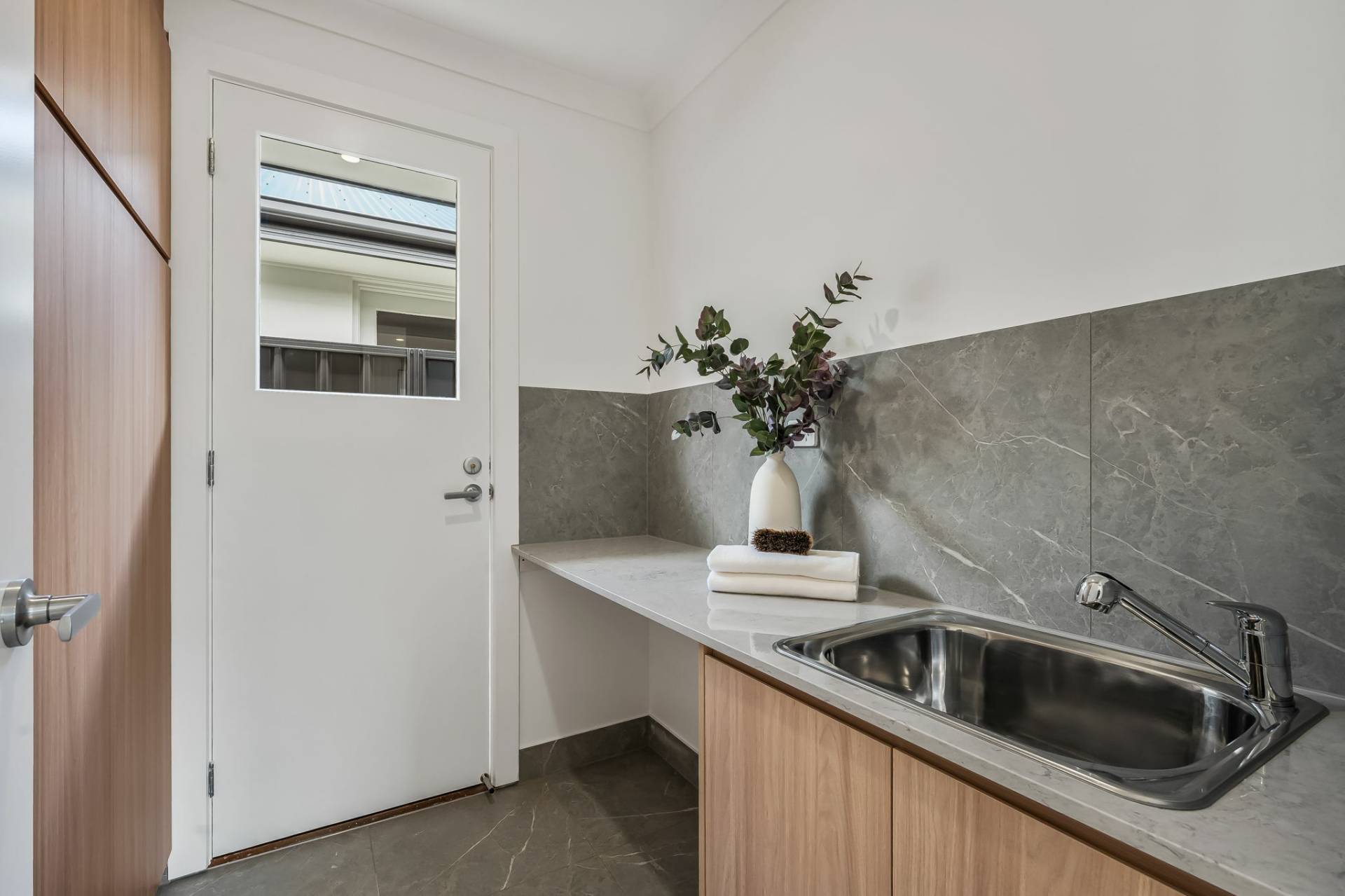 Step inside and immediately feel at home. The interiors exude coastal sophistication, with a soft, neutral colour palette, stylish timber-look flooring, and sleek downlights creating an inviting, light-filled atmosphere throughout.
