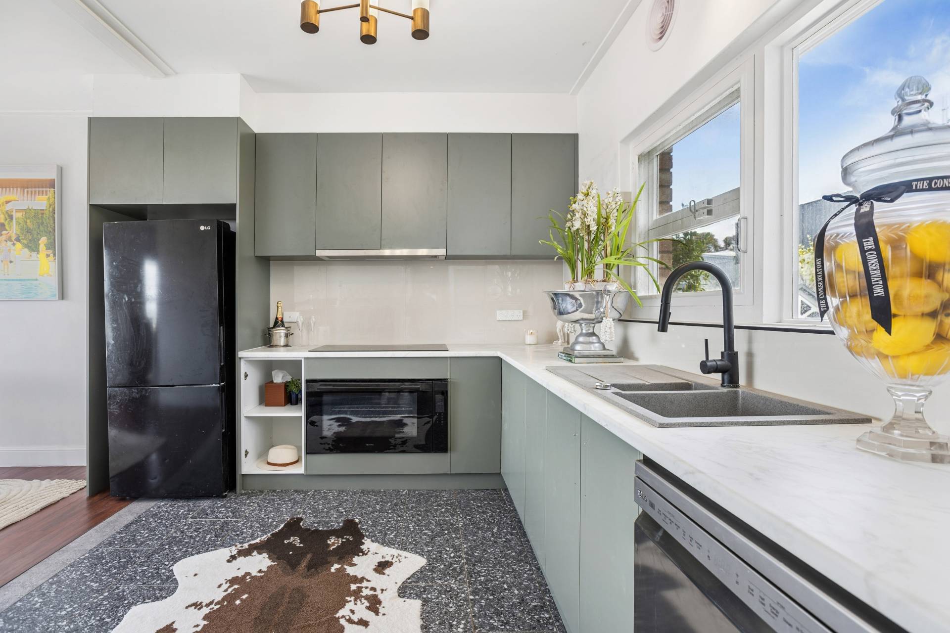 The upper level embraces a bright, open-plan living and dining area framed by expansive picture windows that capture the ever-changing coastline. A newly renovated kitchen blends style and functionality, with quality finishes and a seamless flow ideal for entertaining.