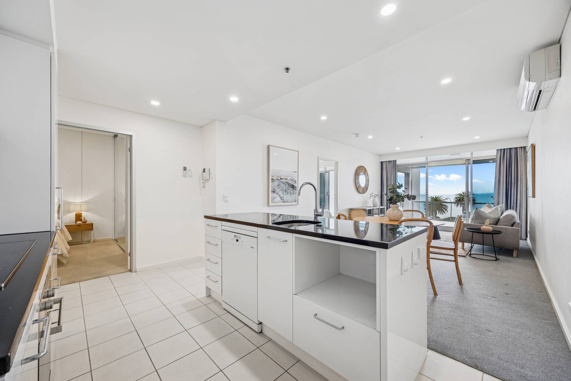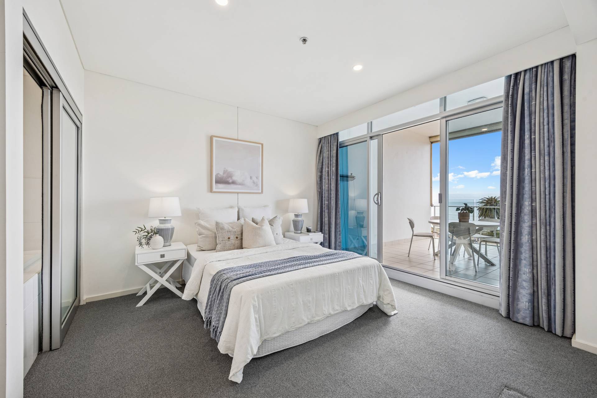 Inside, this spacious 135 sqm apartment reveals one of the building’s largest layouts, showcasing quality finishes, light-filled living zones and seamless indoor / outdoor flow to an expansive balcony capturing views across the coastline and Granite Island.