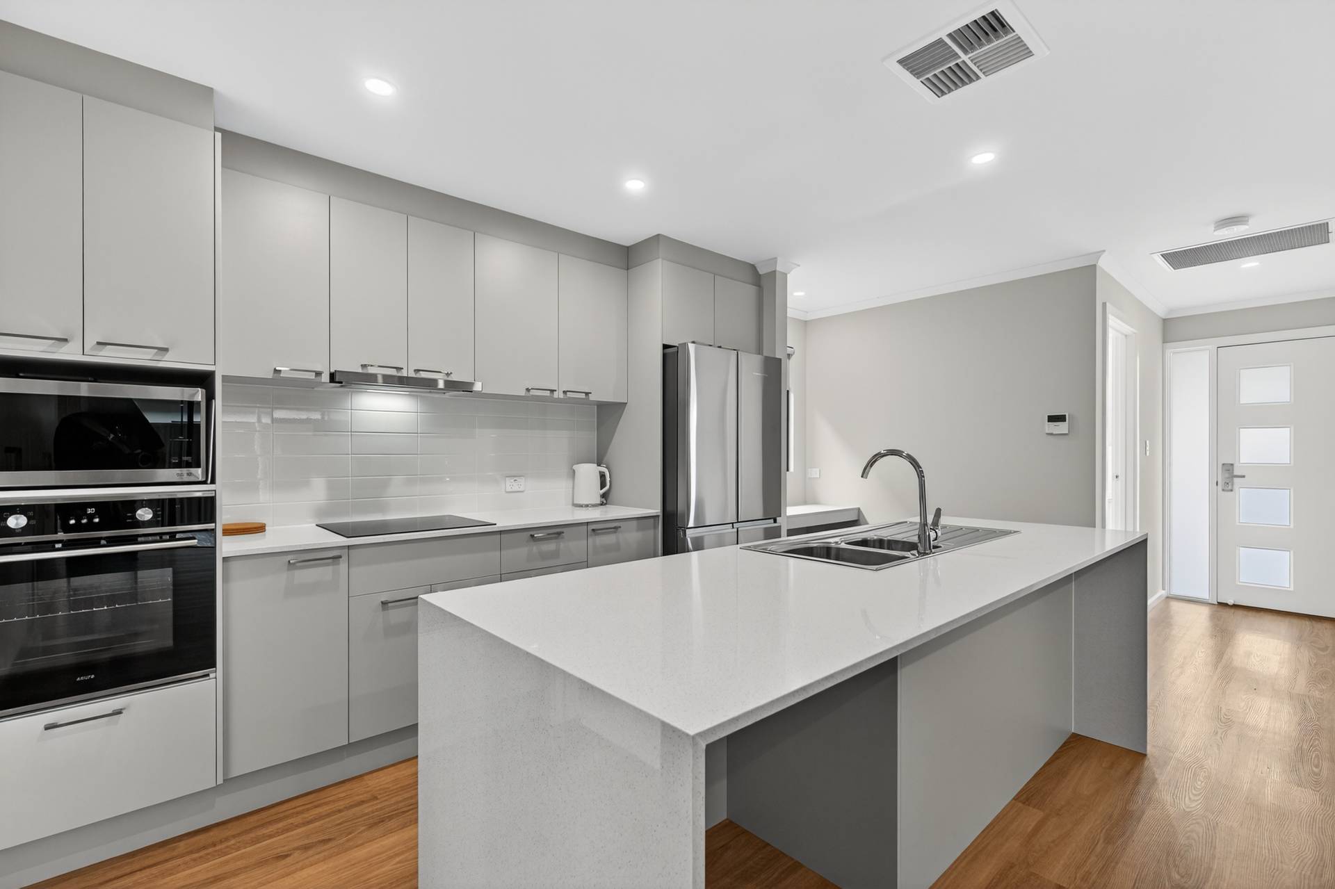 Step inside to a generous open-plan living zone filled with natural light, complemented by a dedicated study nook and seamless access to the private outdoor entertaining area. The kitchen is a standout, appointed with sleek stone benchtops, electric cooktop, dishwasher, soft-close pantry and excellent storage, ideal for everyday living or hosting friends.