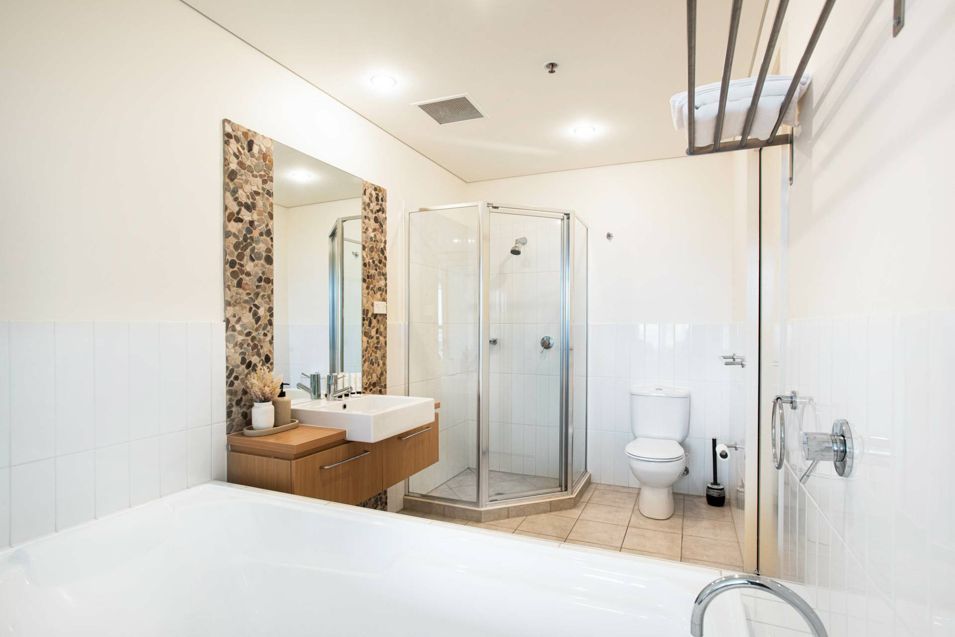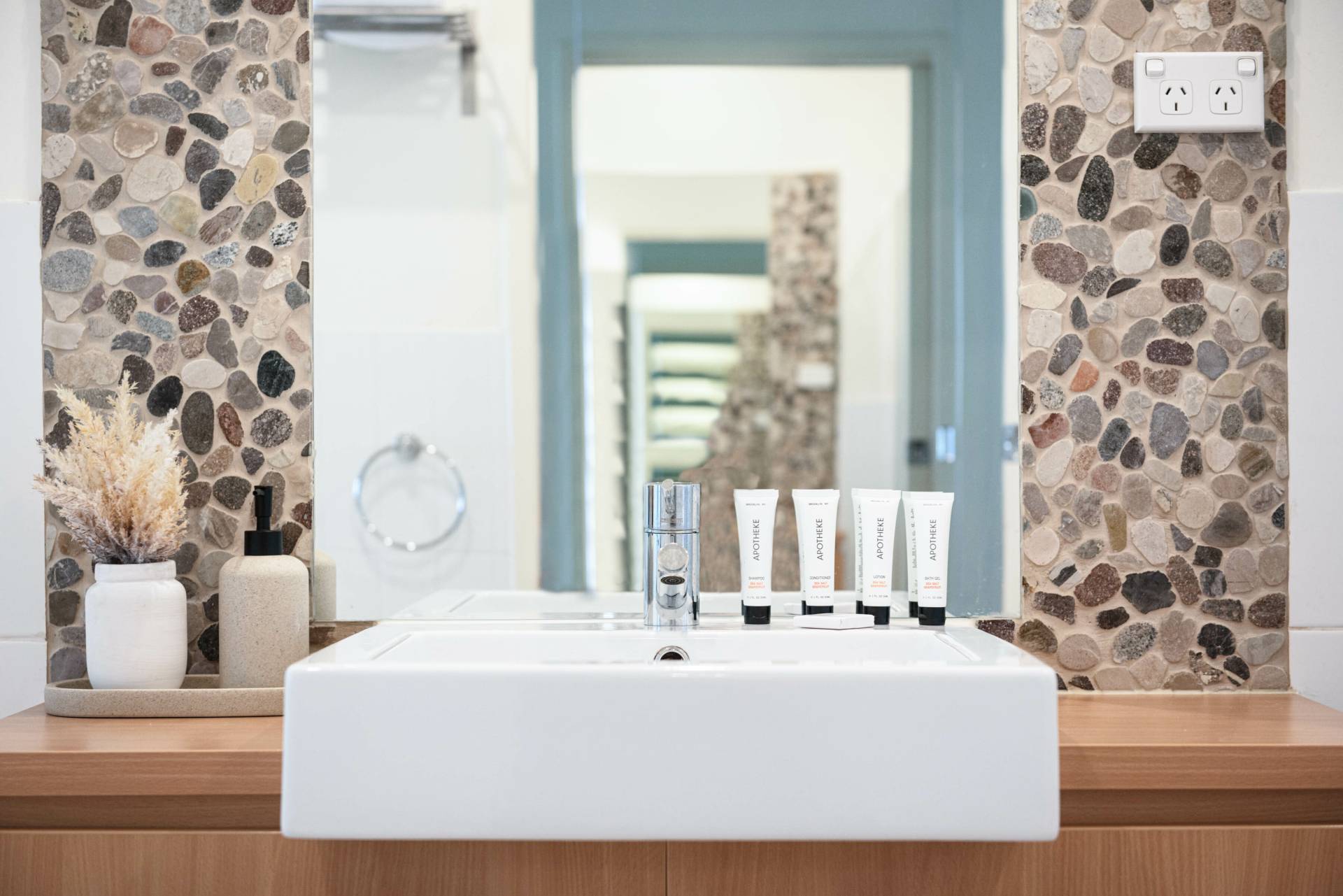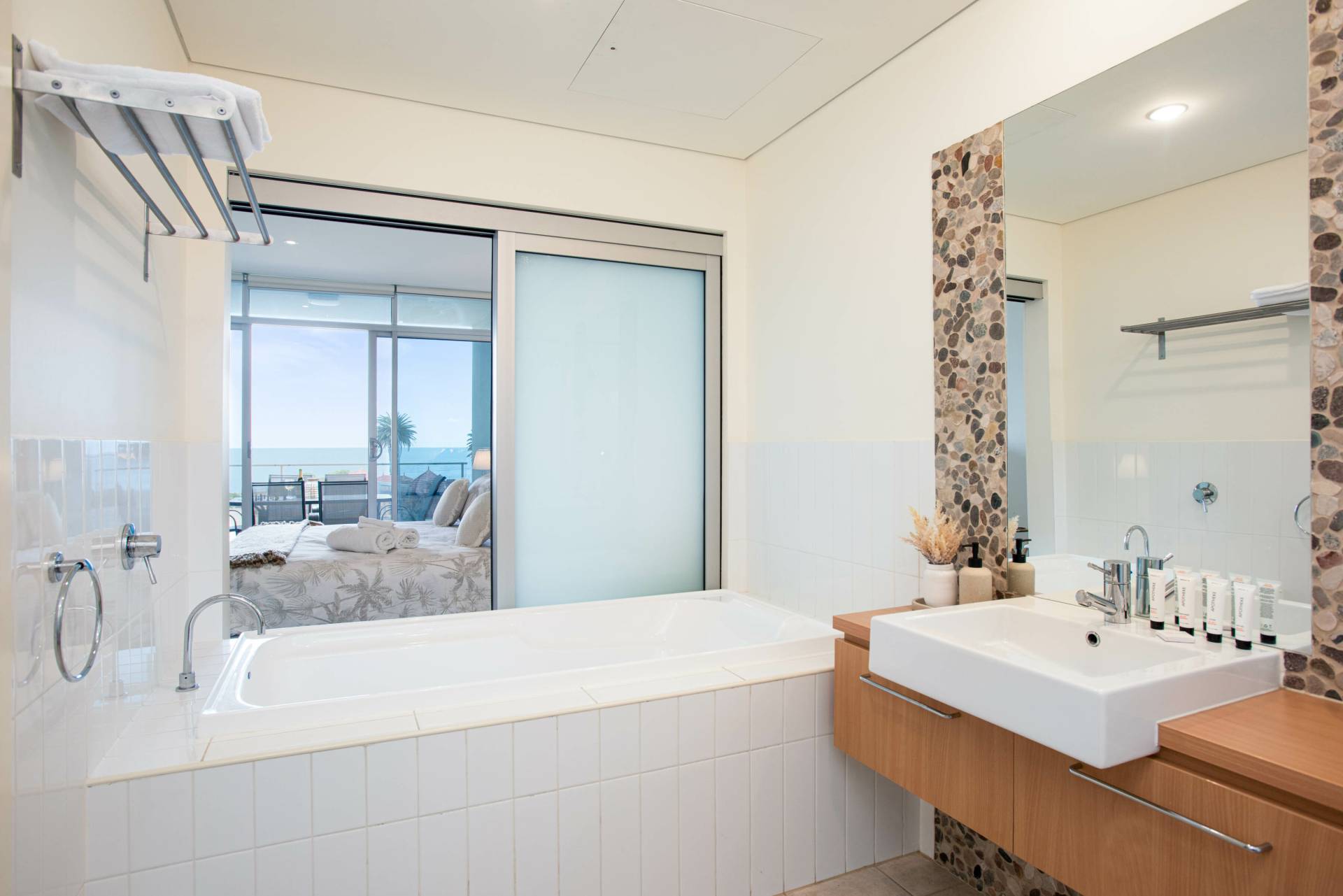 At the end of a fun day at the beach come back and have a long hot soak in our luxurious bathtub that has views out to the ocean. Relax and rejuvenate by sitting out on the double private balcony, watching the sun go down, enjoy a cocktail and a good night’s sleep in the deluxe king size bed, while the rest of the family have plenty of space.