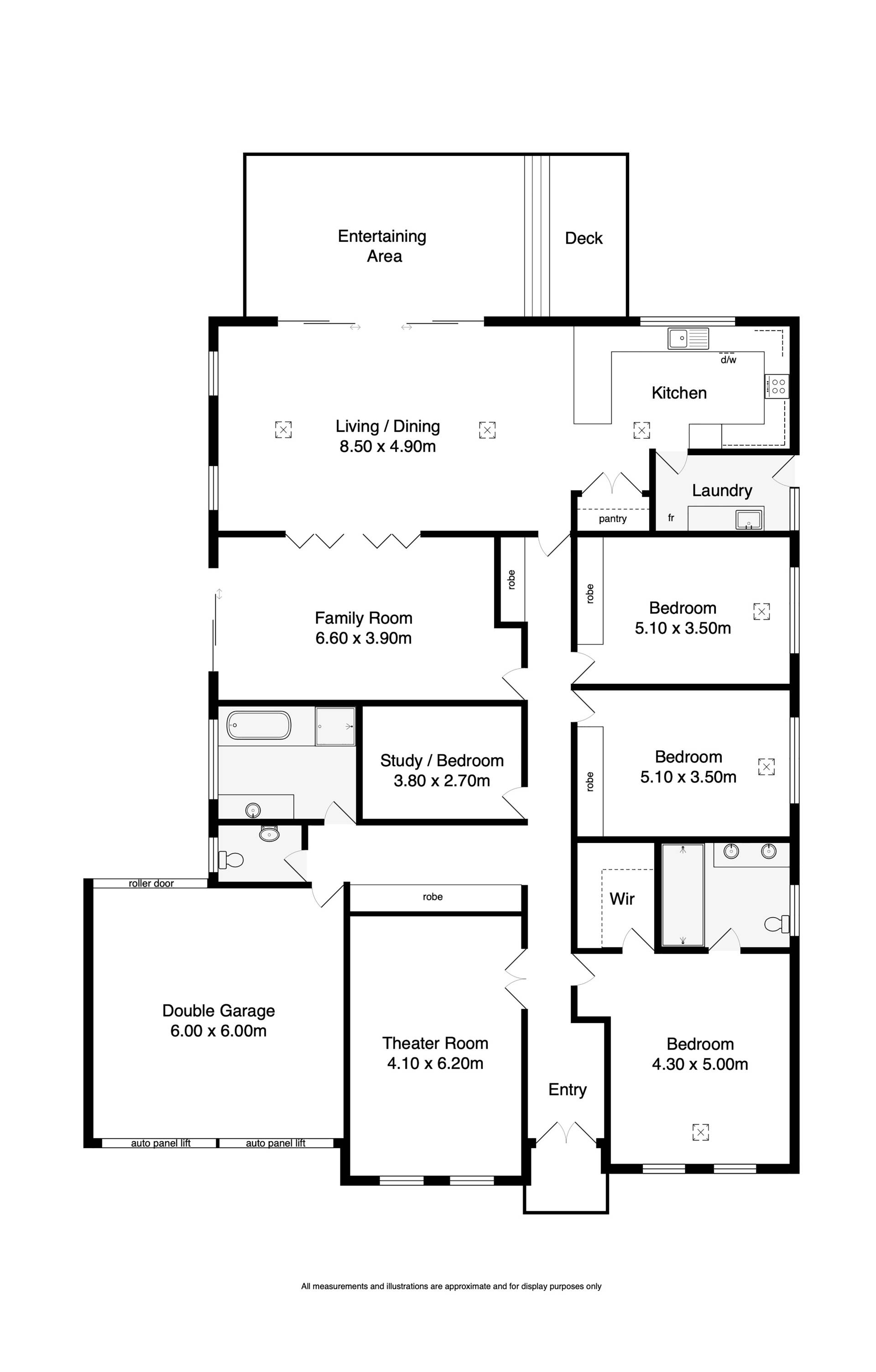 - Rumpus room with sliding door to the outside and concertina doors to the main living area.