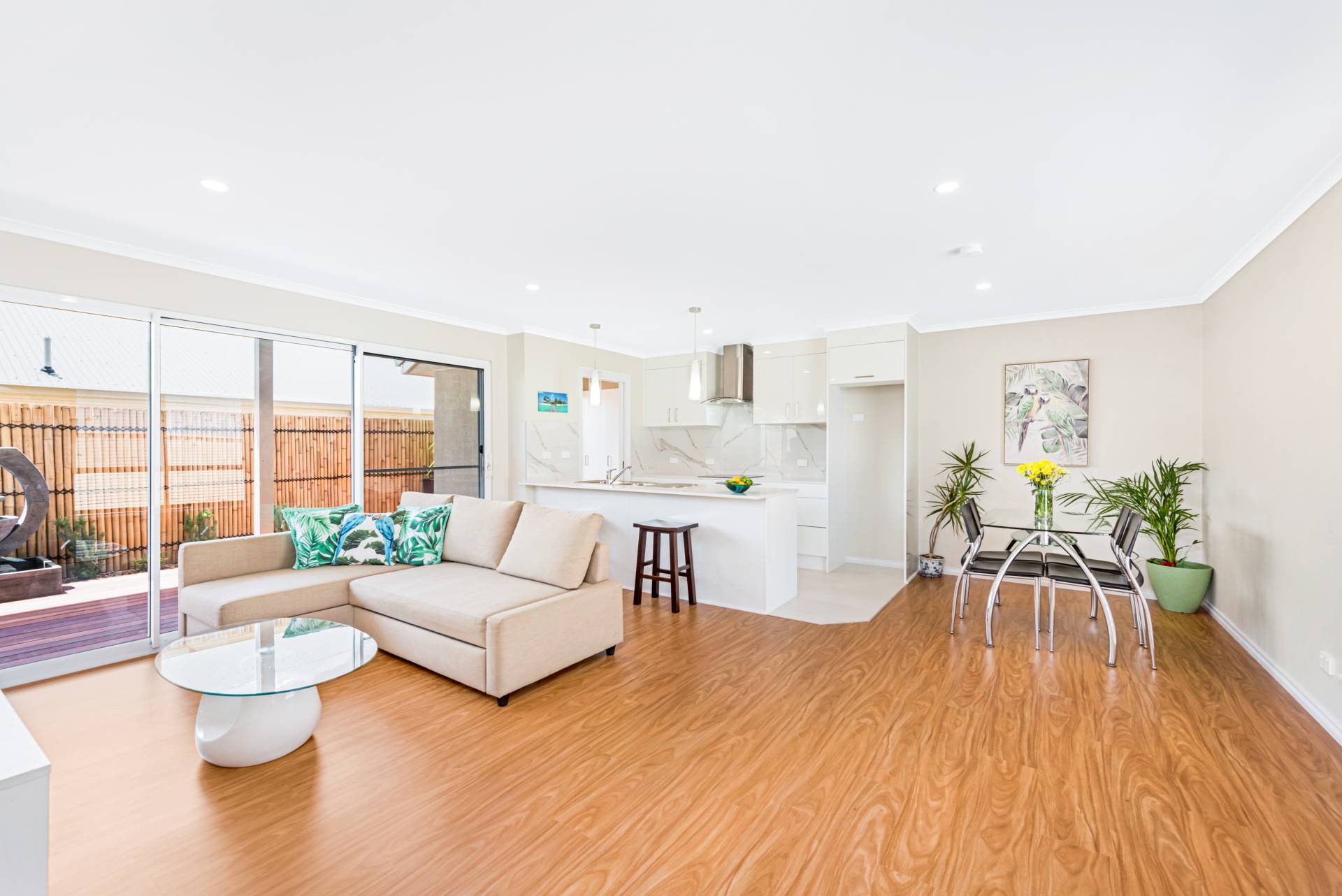 - Laminate flooring throughout living area