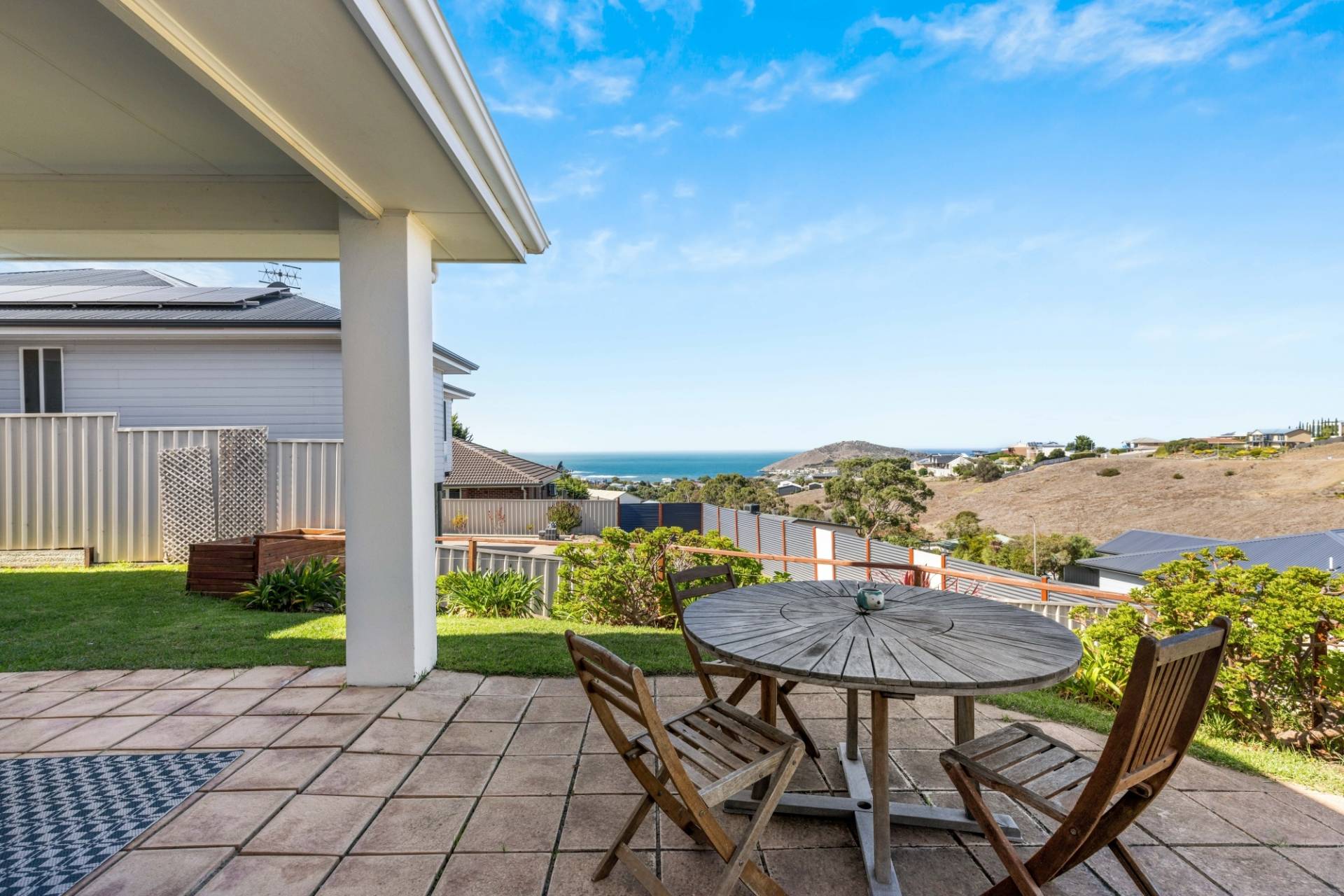 Featuring quality stainless steel appliances, expansive breakfast bar, the kitchen cooks like it looks atop striking timber-style floors, outdoor alfresco style dining, and a pet friendly garden with cubby house and who cannot forget those views, sit back, and watch the sunrise over the ocean or the kangaroos that frolic in the rolling hills behind you.