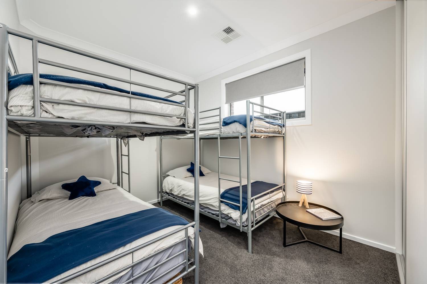 In Bed 1 and Bed 2 the property has luxurious queen beds, Bed 3 has double bunks with all linen supplied, perfect accommodation for 2 families or 3 couples. The master bedroom has an ensuite with a generous walk in robe and the main bathroom has a relaxing bath. The back deck area has a gas BBQ for that classic Aussie barbeque on a warm summer’s day and a fire pit for a cold winter’s night. For added year round comfort the home includes reverse cycle ducted heating and cooling.