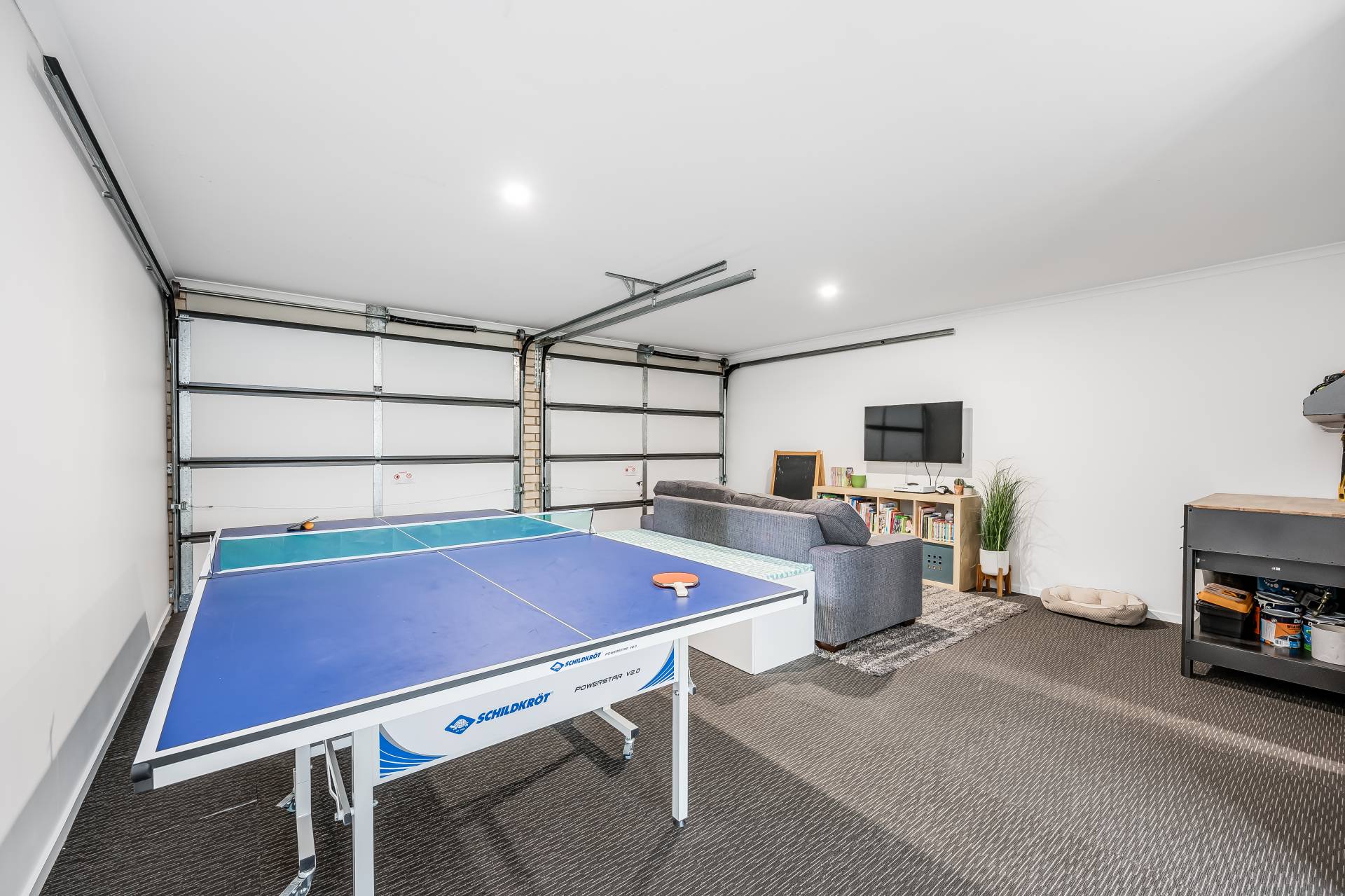 The Double Access garage has been converted into a kid’s rumpus room with rubber floor tiles What a cool idea!