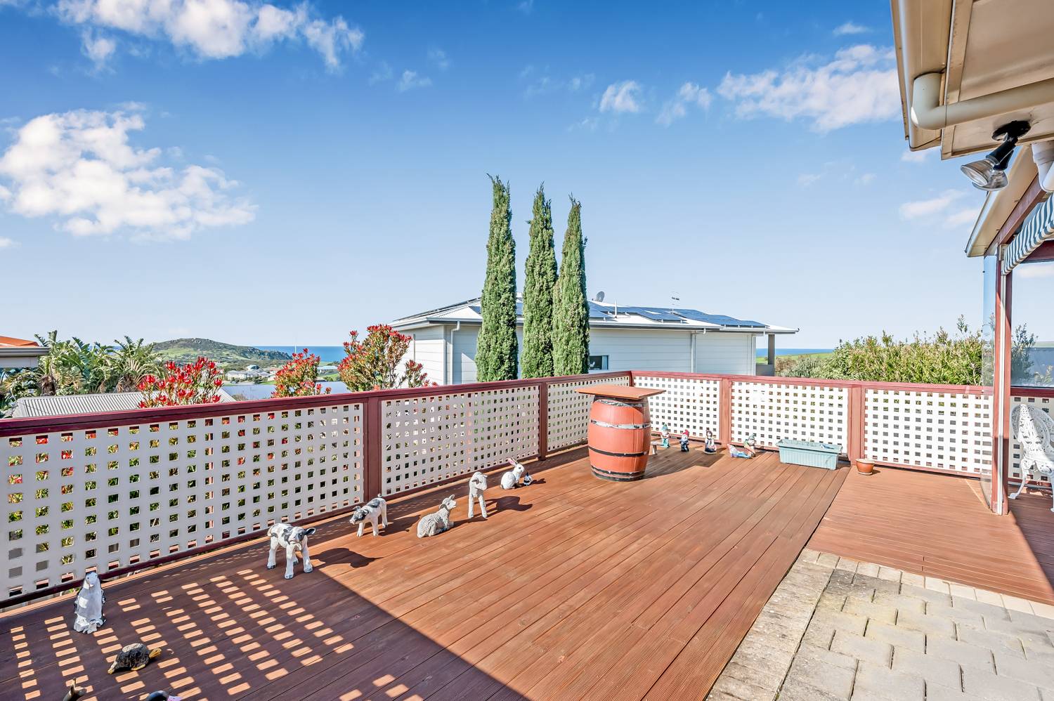 Sitting on the rear entertainment deck, you can enjoy views of the Bluff and Petrel Cove.