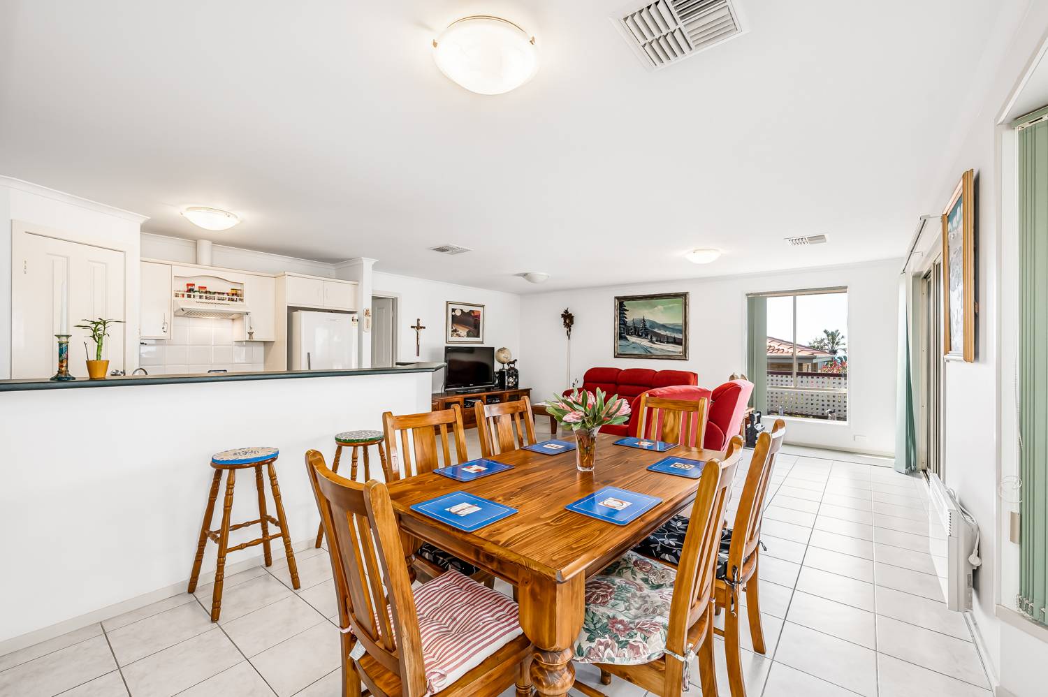 Kitchen with extensive cupboards, walk in pantry and easy clean tiles. Meals and family room area at the rear of the home looking out onto the enclosed alfresco deck area.