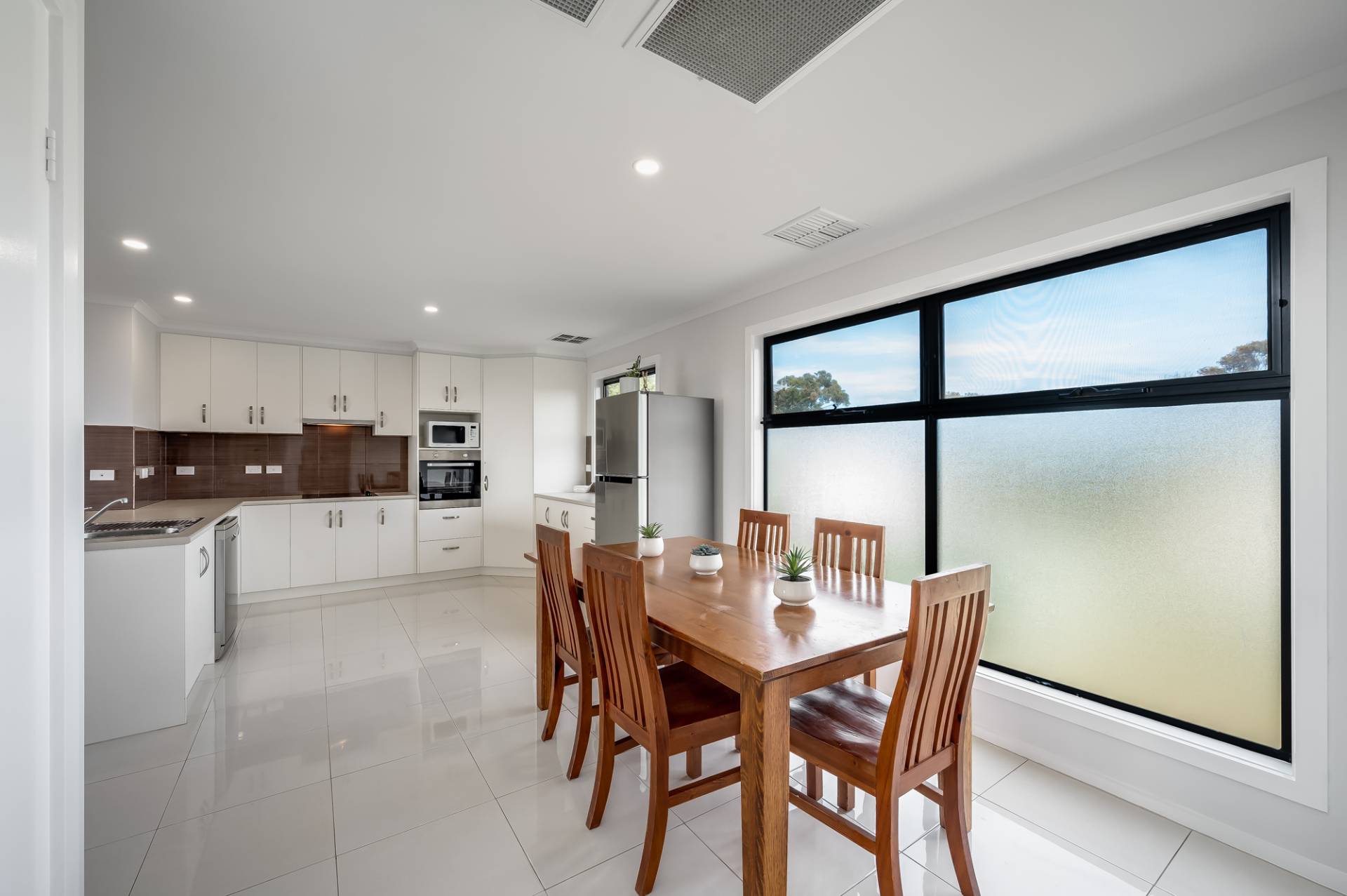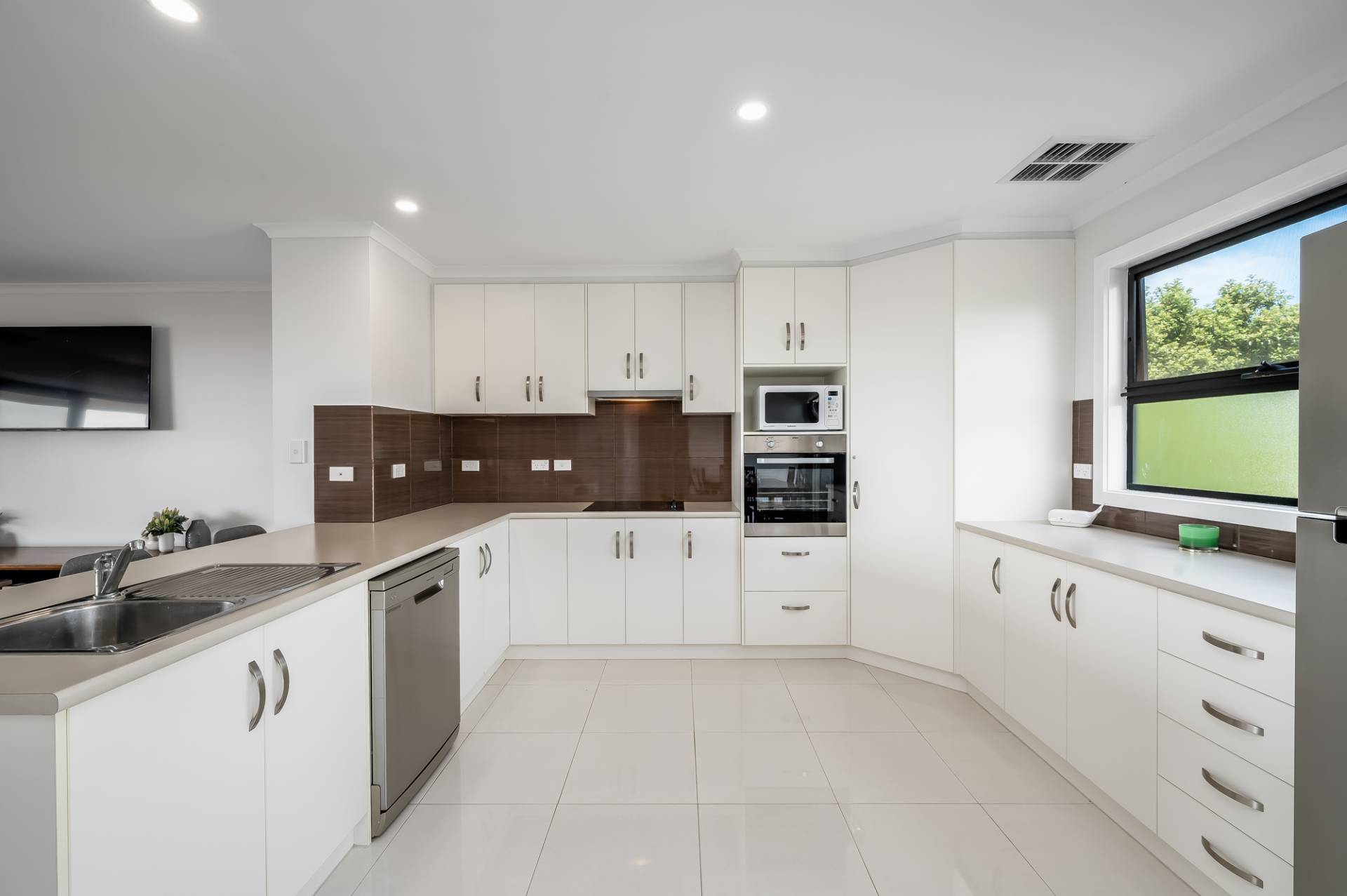 - Tiled through high traffic areas