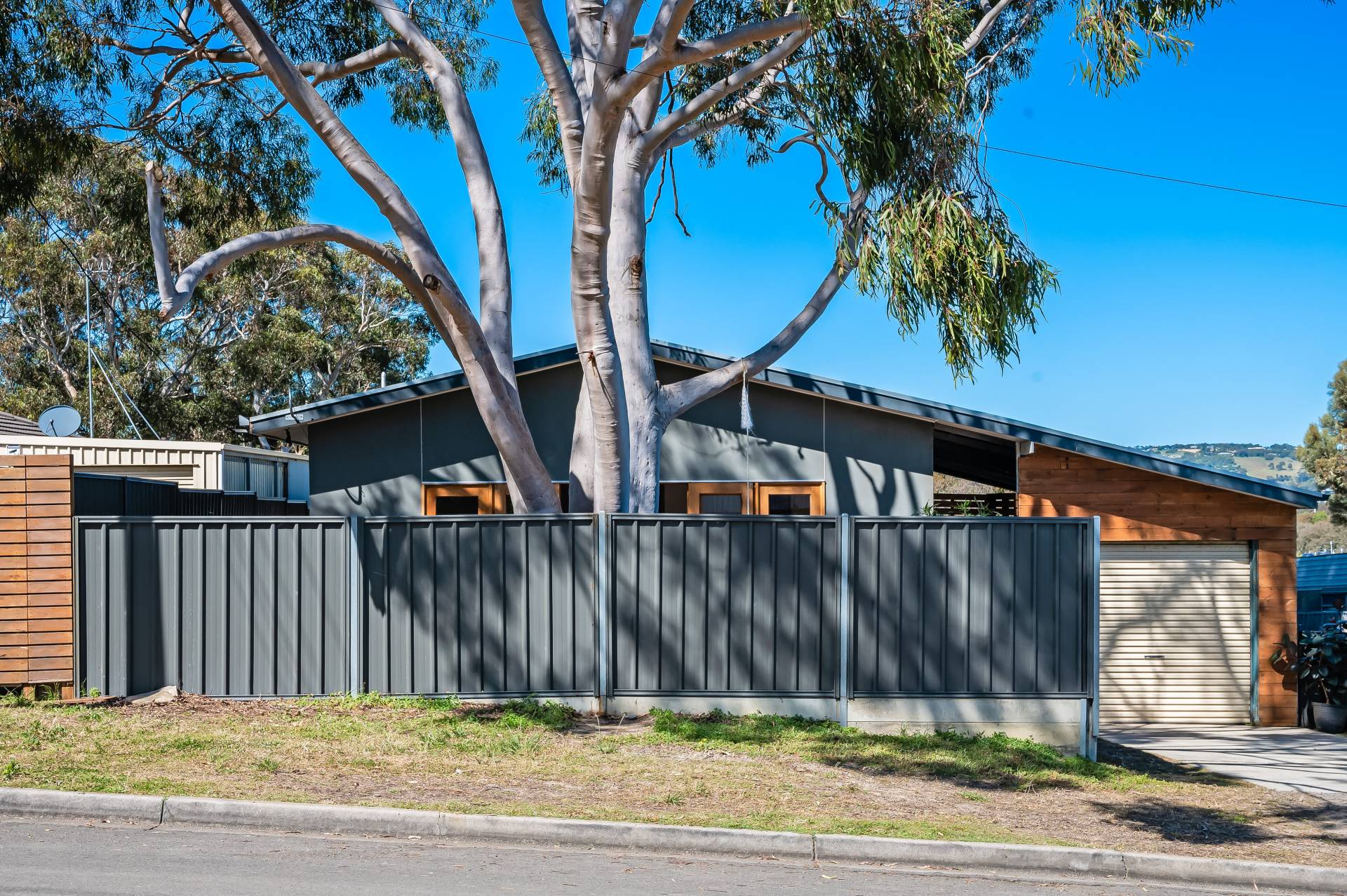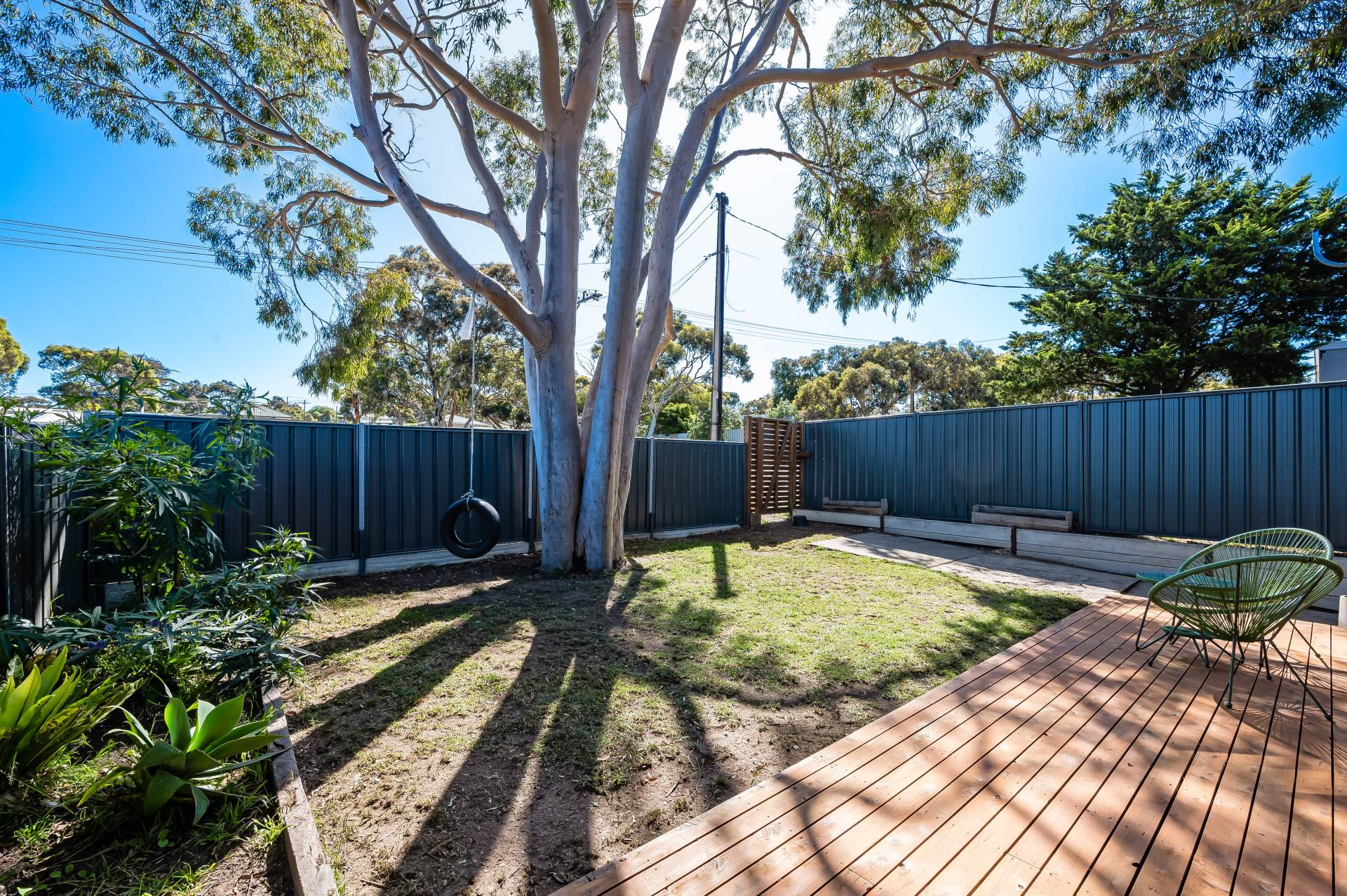 · Front deck in enclosed courtyard style yard with spectacular gum tree