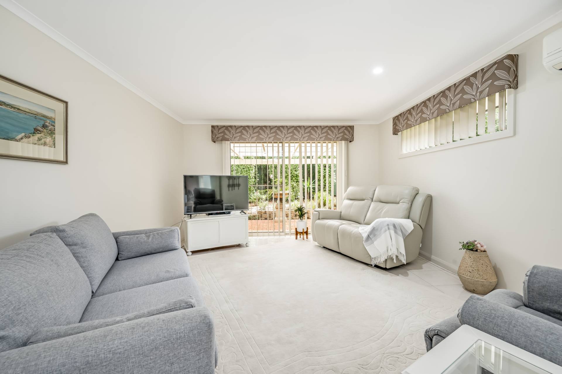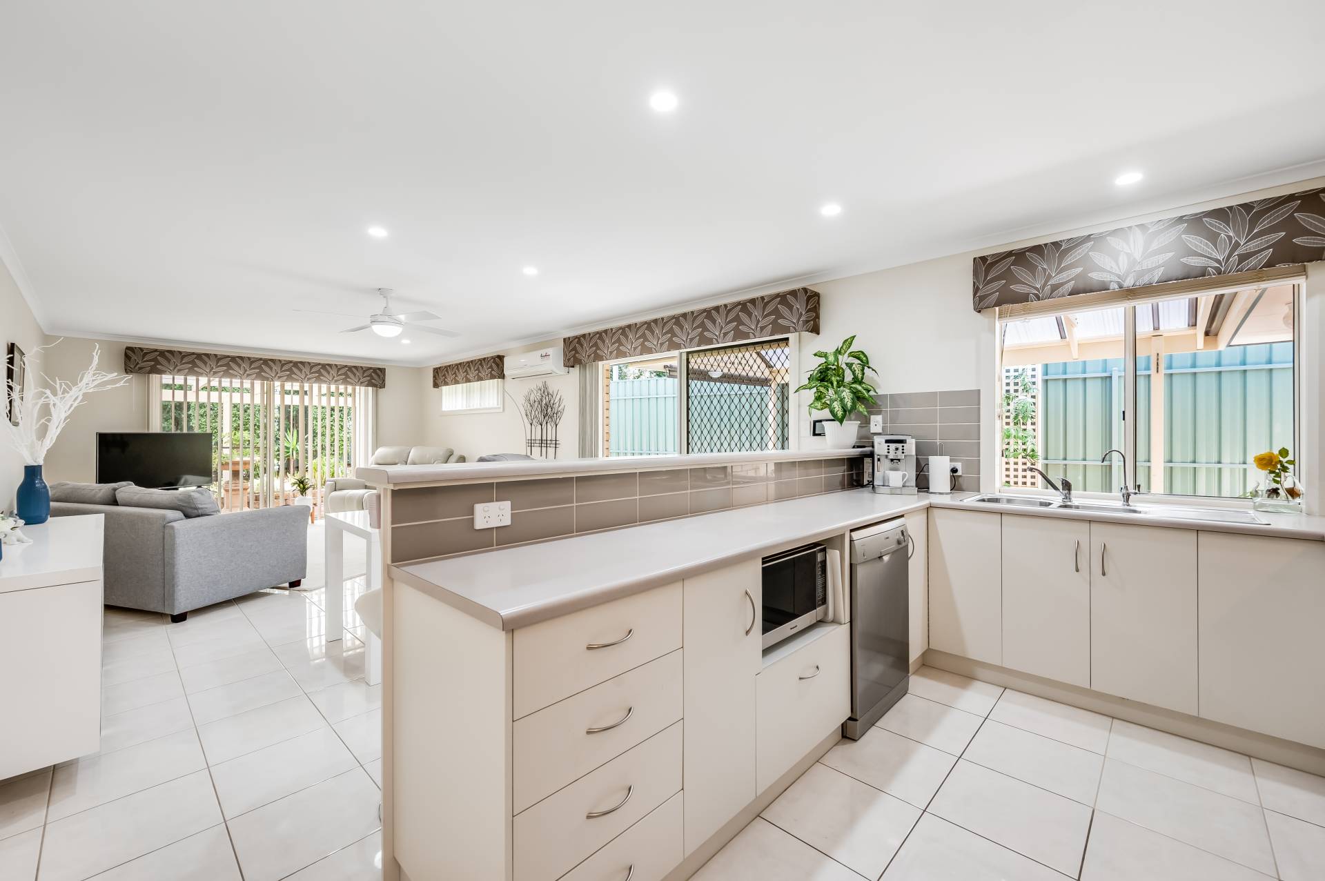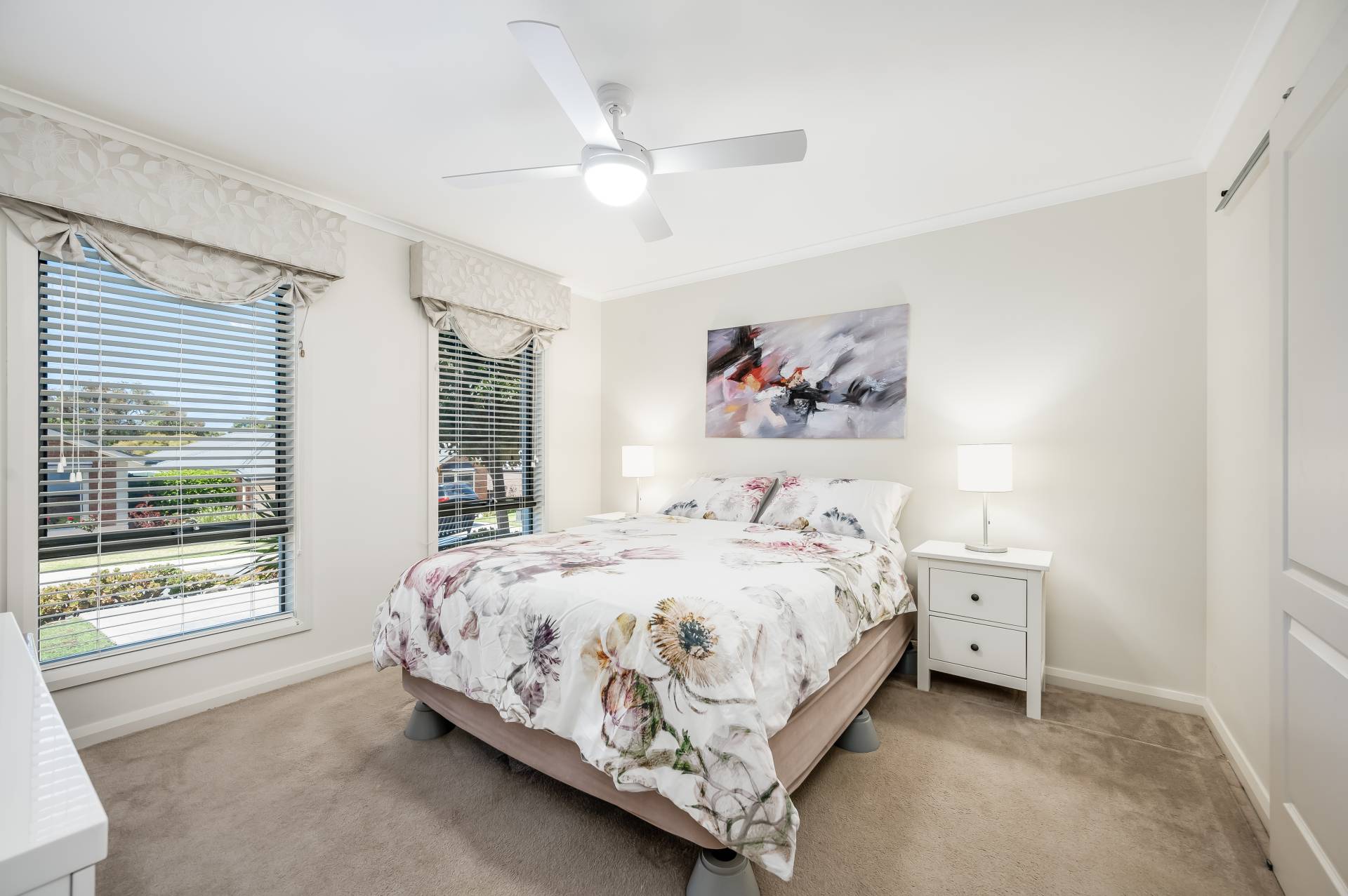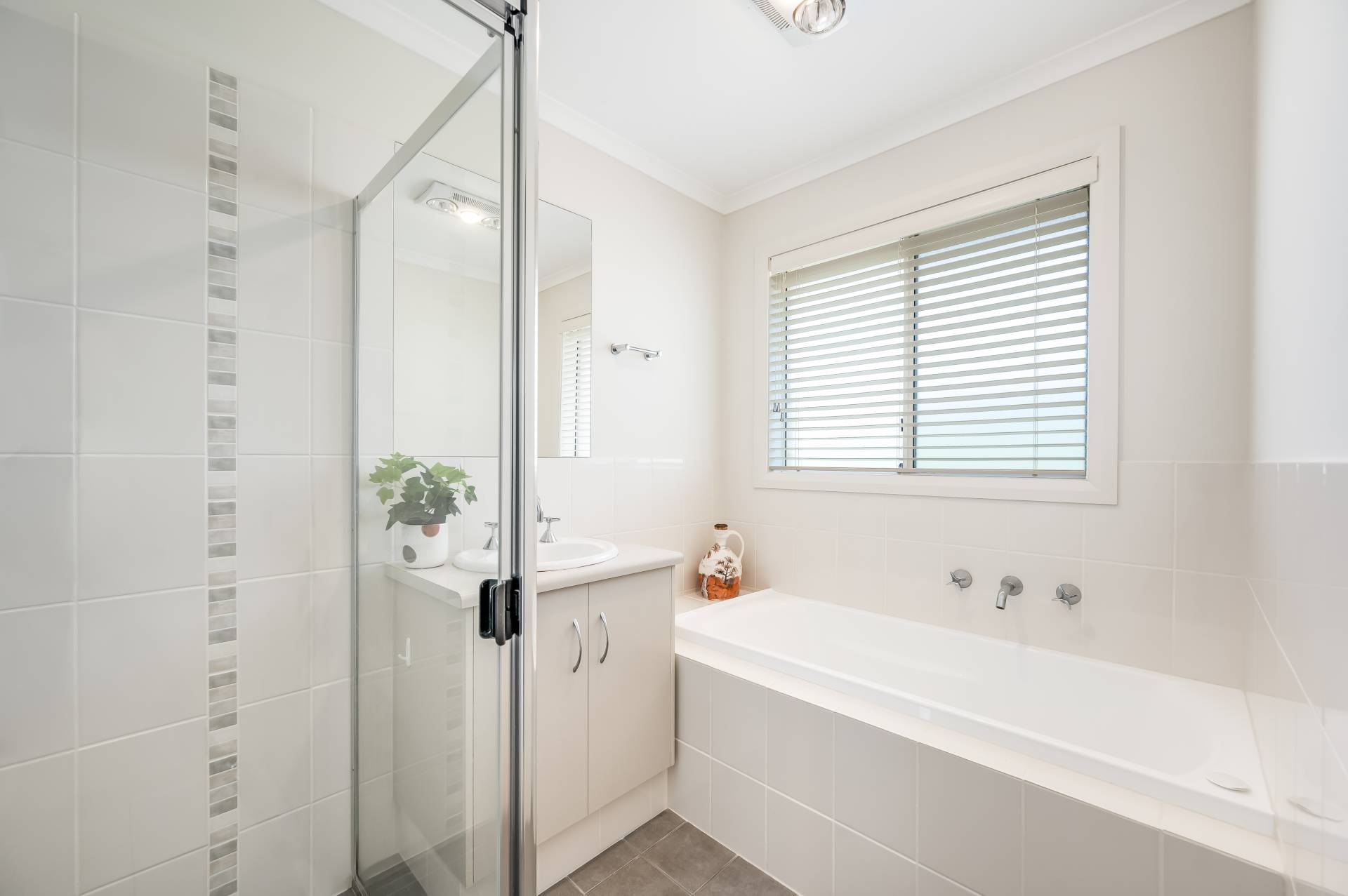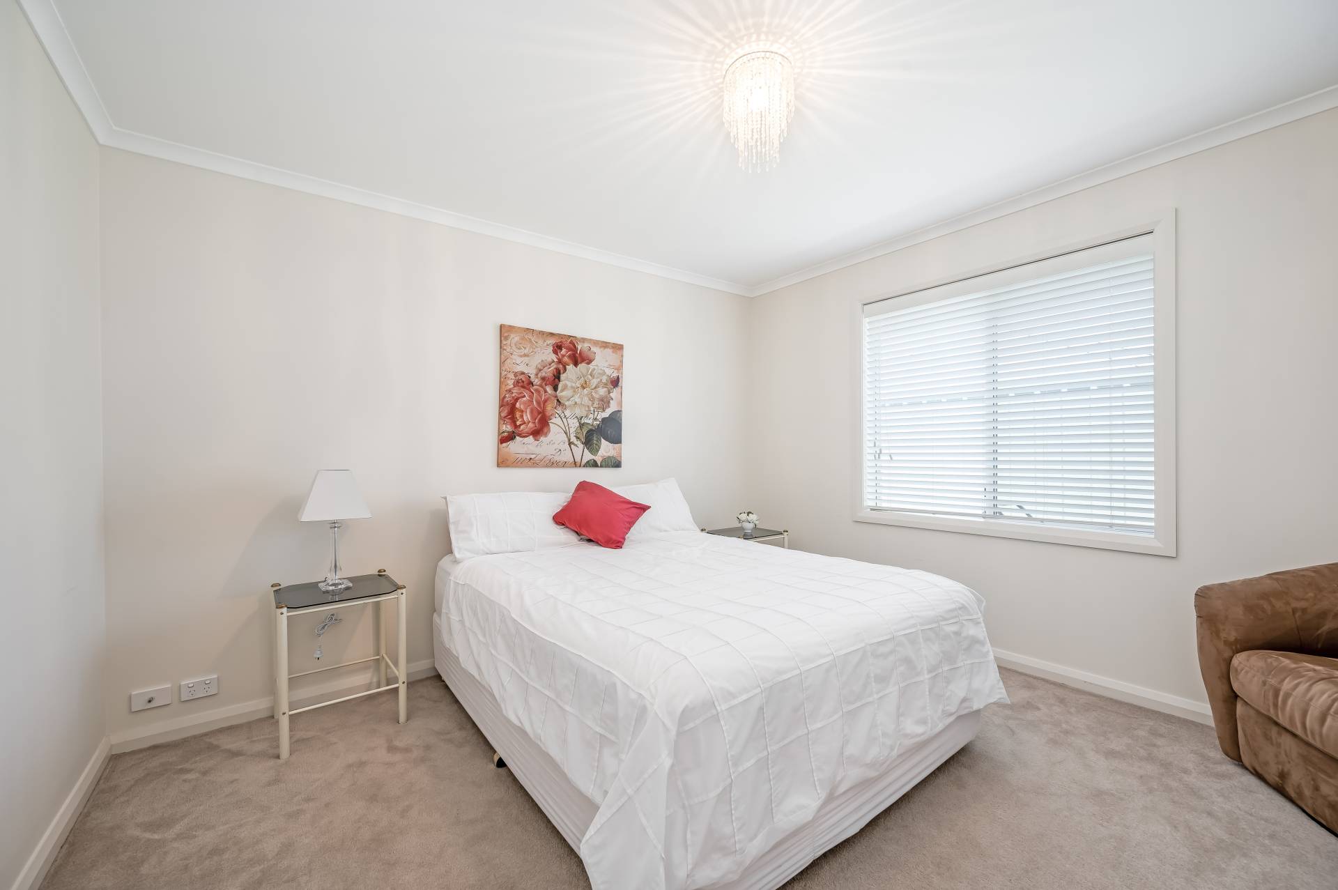 With a free-flowing floor plan that sees a lovely open-plan living and dining helmed by a spacious chef’s zone flush with crisp cabinetry and gleaming appliances for stress-free cooking, and a wonderfully sunbathed alfresco with charming, pitched pergola overlooking neat kid and pet-friendly lawns and flowering gardens – enjoy effortless indoor-outdoor entertaining that makes the most of the warm weather and sunshine. You’ll also find a comfortable bedroom layout offers two good-sized and soft-carpeted rooms separated by the sparkling main bathroom with relaxing bath as well as a light-filled master bedroom featuring walk-in robe and private ensuite.
