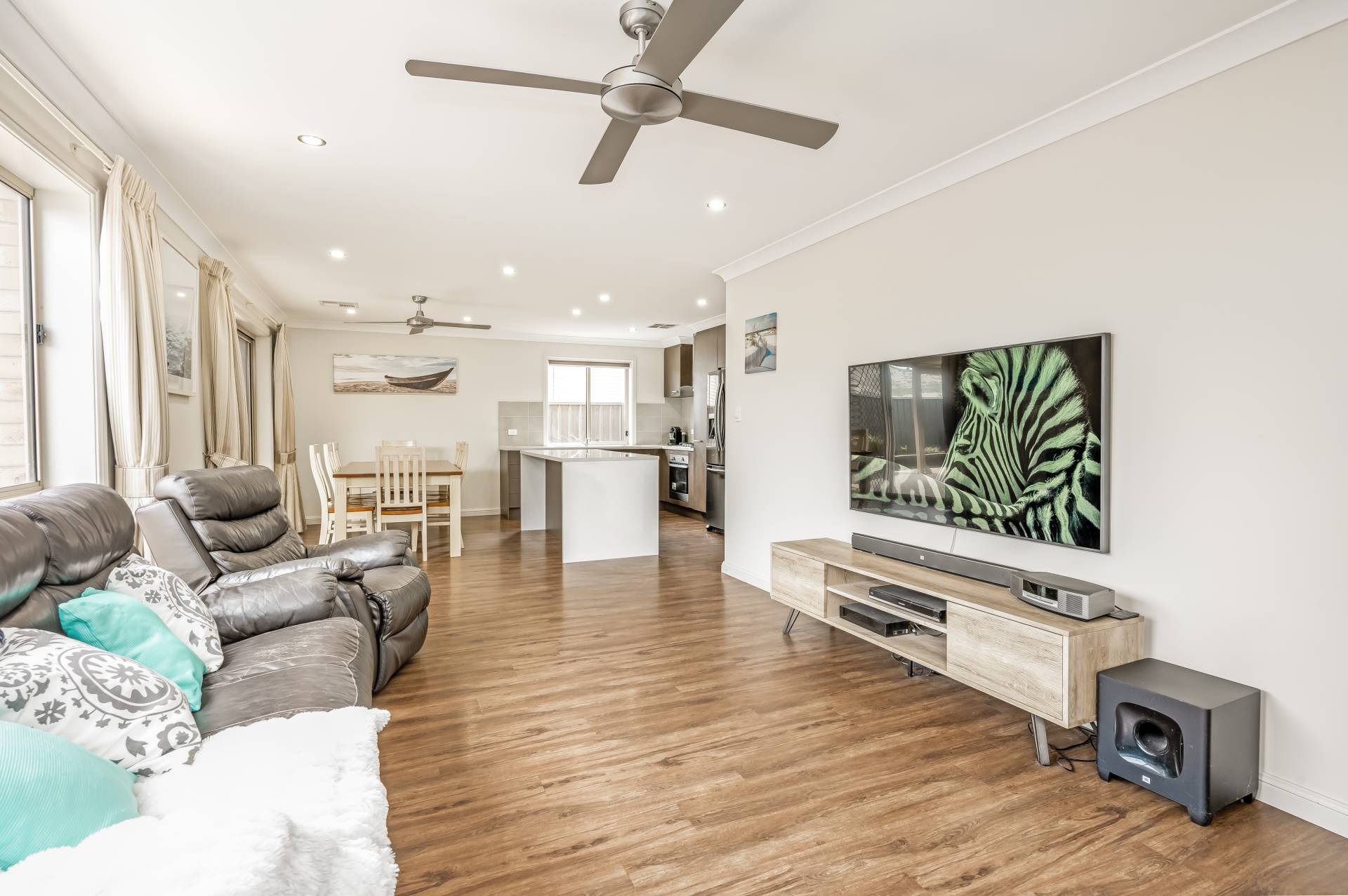- Free-flowing floorplan with lovely floating timber floors, ambient downlighting, ceiling fans and ducted AC throughout for year-round comfort