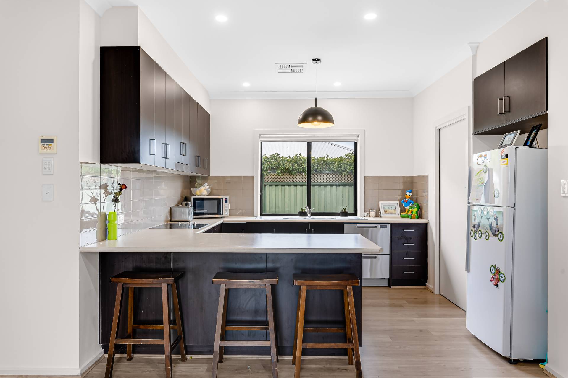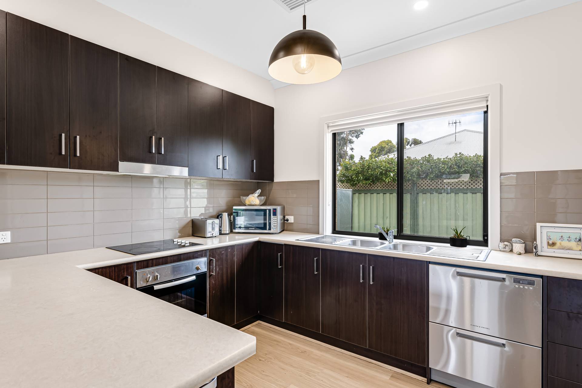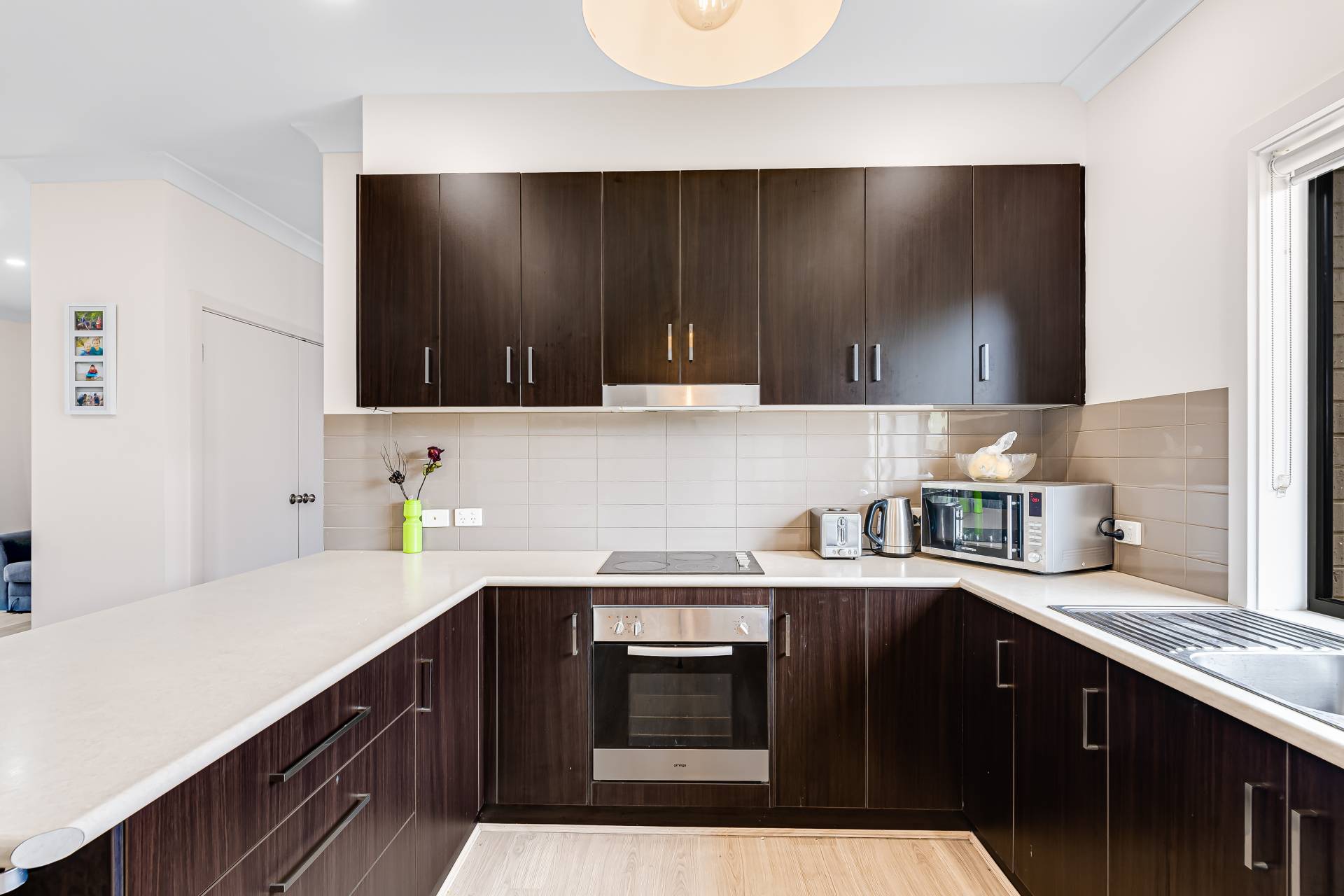 - − Generous chef’s zone with great bench top space, abundant cabinetry and cupboards, stainless appliances including dishwasher and sleek electric cook top